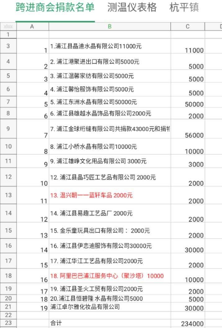 浦江县跨境贸易商会成立于2019年11月,由78家从事跨境电商业务的中小微企业组成,抗击疫情以来会员企业纷纷解囊,踊跃捐款捐物,商会已捐赠总计281132元(其中防疫应急物资47132元,现金234000元)。