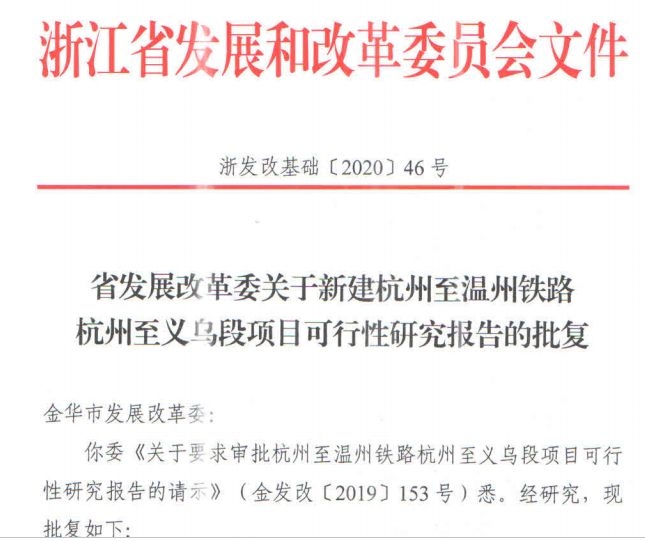 杭温高铁一期义乌至温州段已于2019年全面开工建设,此次获批的杭州至义乌段是杭温二期项目。线路起于桐庐东站经浦江至义乌站,全线新建桐庐东站、浦江站,接入既有义乌站。杭义段线路全长约58公里,金华市境内约37.6公里,其中浦江33公里、义乌4.6公里,估算总投资约92亿元。