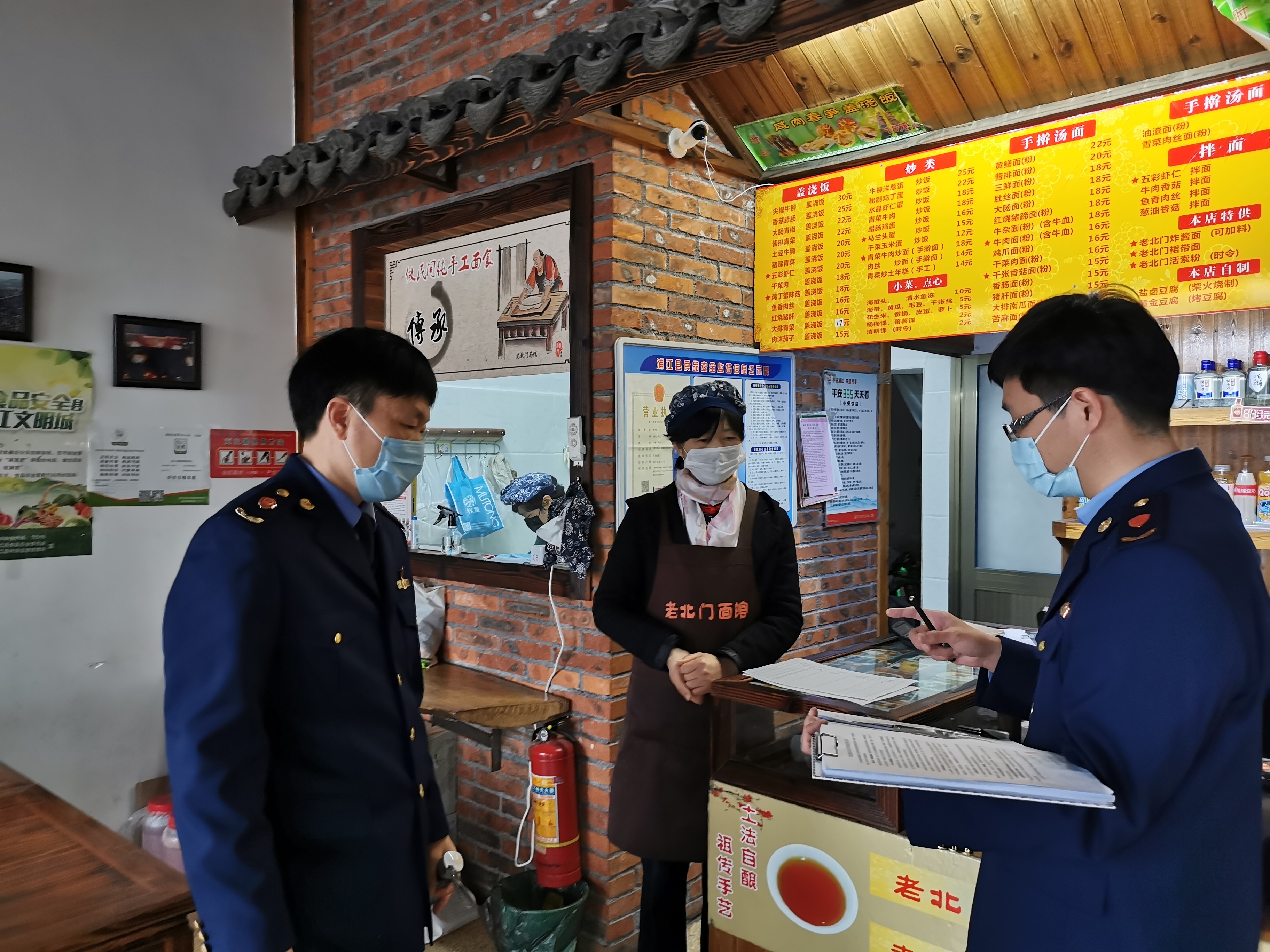 与大中型餐饮店相比,小餐饮数量多、分布散,开放堂食后疫情防控难度较大。为确保餐饮单位落实开放堂食后的疫情防控工作,浦江县市场监管局采用“网格化”管理对全县餐饮单位开展地毯式检查。除了签订承诺书、做好场所消毒、人员体温测量外,还要求餐饮单位减少场所桌椅摆放、调整餐桌距离、提供公筷公勺、登记顾客信息,确保疫情防控。