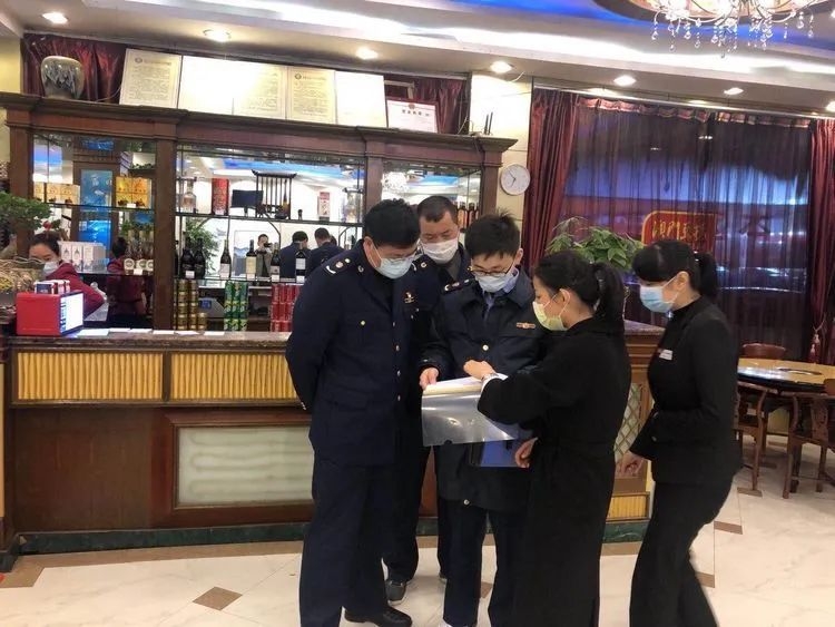 在昨晚的巡逻中,执法人员仔细查看了防疫物资是否配备到位、食材来源是否安全、就餐桌椅是否处于安全距离等情况,详细指导经营者规范经营堂食。同时,对不符合要求、不规范执行的现象,予以现场纠正,责令其限期整改并推迟开业。