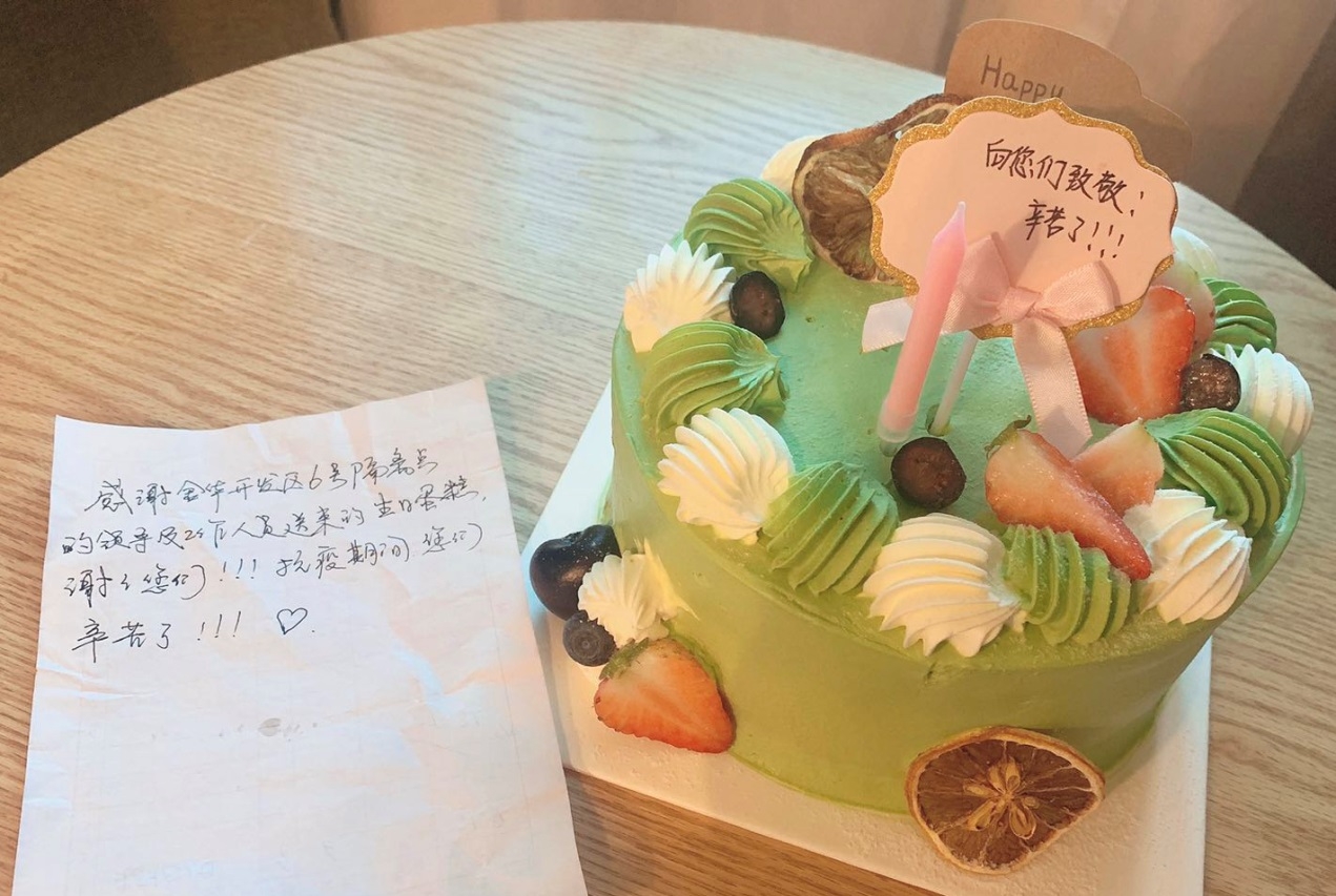 在被隔离人员送来之初,隔离点工作人员在给每位隔观对象输入信息时,特别有心地对照了隔离人员隔观期间的生日信息。如果有隔离人员的生日刚好是在隔离期间,工作人员就会通过定制生日暖心卡和蛋糕,为隔离人员送上小小的惊喜。感动于隔离点入微细致的暖心服务,在3月5日学雷锋纪念日,刚解除隔离不久的的某装饰材料公司负责人就送上了锦旗。
