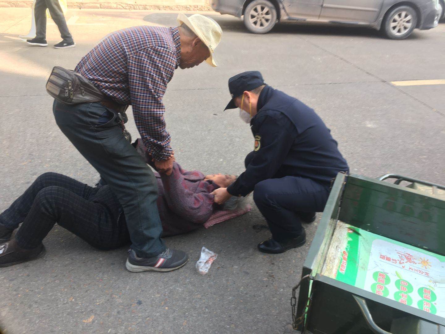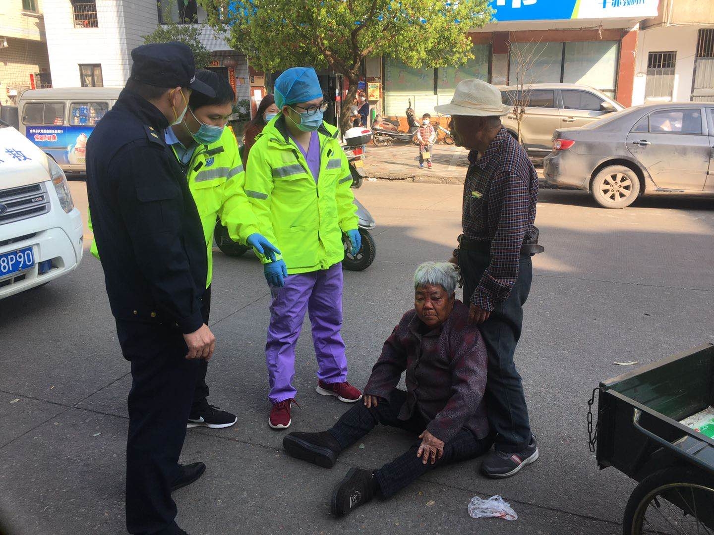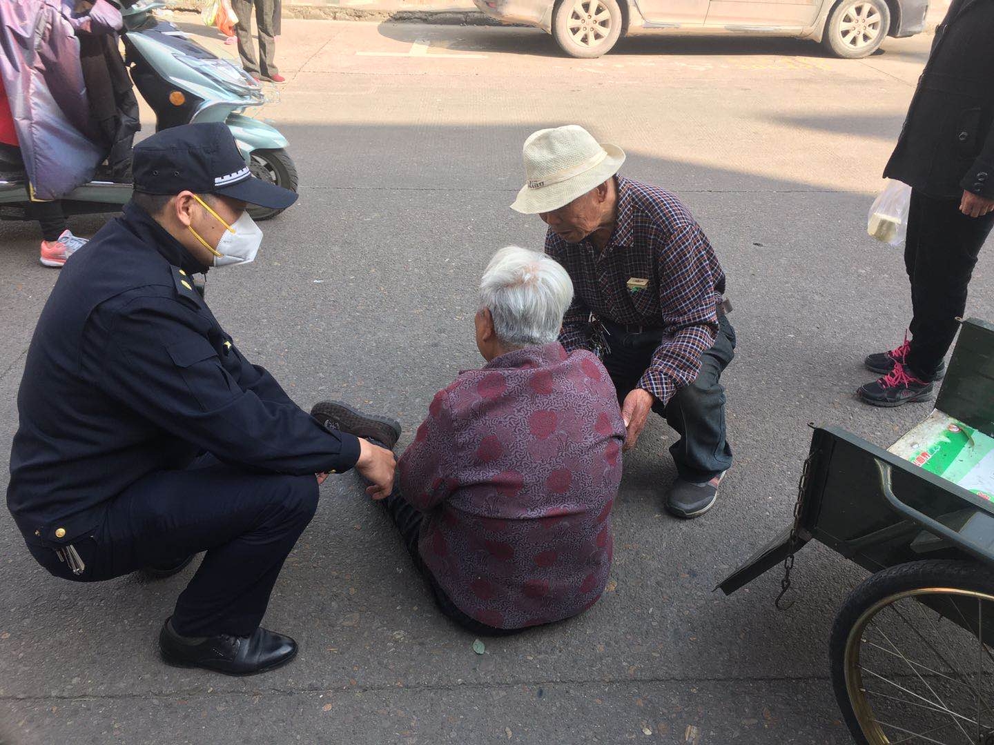 事情还得从几天前说起。3月20日上午,西关中队执法队员王新培、胡卫平和许小民在进行日常巡逻时,经过双馨路和磐安街交叉口路段,遇见一名老人摔倒在地,周围聚集了不少围观群众。