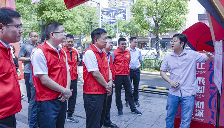 随后,张旭辉一行前往宾虹商圈,沿着兰溪街步行街边走边看,详细询问“一圈六方”日常管理机制、智慧化改造提升、经济业态布局等情况。自从实行“一圈六方”日常管理机制,通过部门联合执法和商家共建共管,商圈及周边各类“脏、乱、差”现象得到有效解决,展示了核心商圈的新形象。张旭辉对该项工作表示肯定,他指出,宾虹商圈是开发区人流车流最密集的核心区域之一,必须深化“智慧城管”,提升数字智控能力,让城市管理更为精细化、高效化。要把宾虹商圈作为智慧改造提升的关键节点,植入5G、物联网等现代科技技术,实现多网融合、多方联动、多元共治,探索形成一套成熟的智慧管理制度和经验。