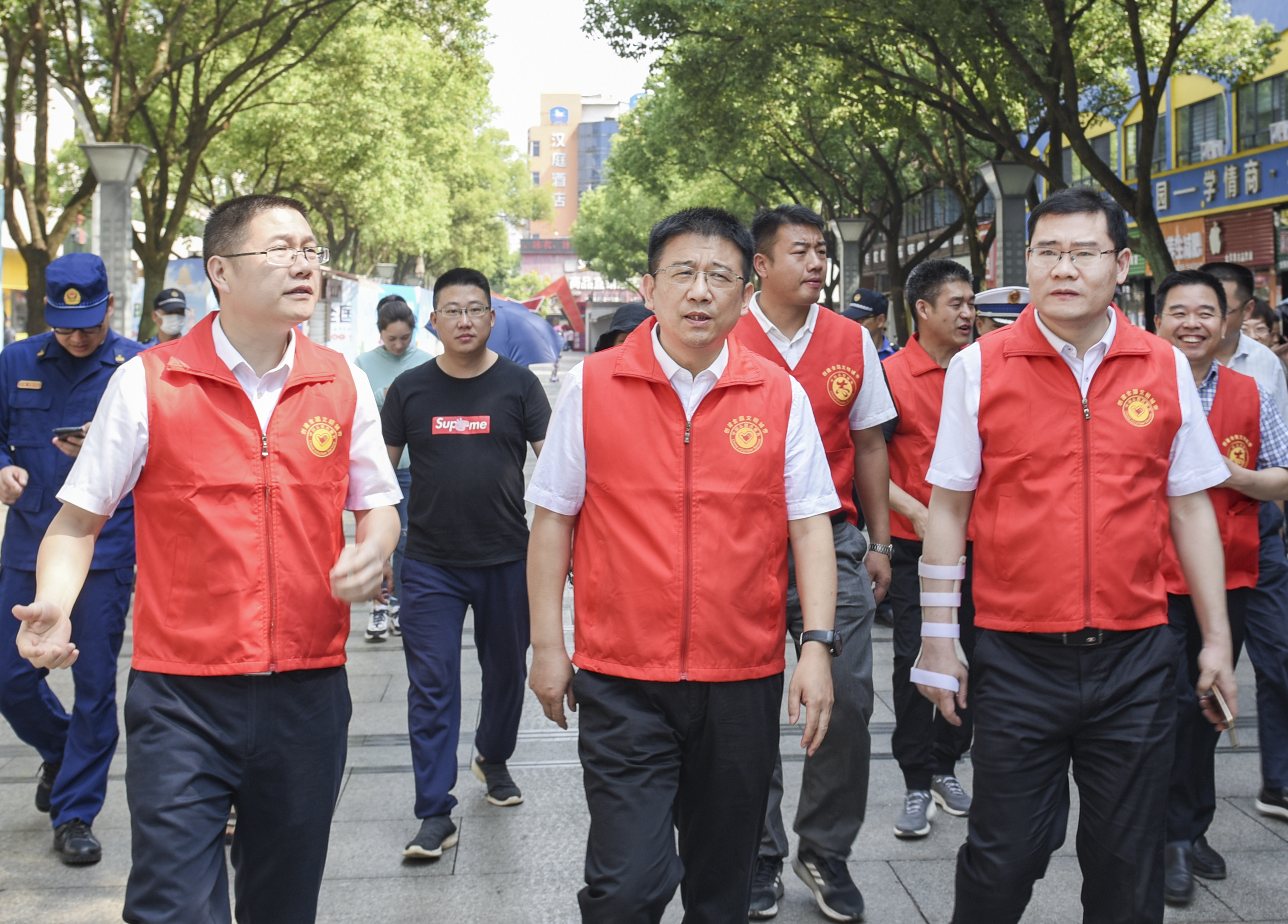 在三江街道三路口社区,张旭辉实地查看社区街道立面改造情况。此路段立面改造主要涉及外墙面、空调机罩、遮阳篷、店招改造和亮化提升。三江街道通过提升城区品位、营造文明氛围等一系列专项行动,做实城市的“里子”。张旭辉要求,要通过创建项目实施,由补齐短板向打造特色转变,争创特色亮点,实现示范乡镇(街道)、示范市场、示范窗口、示范学校、示范医院全覆盖。