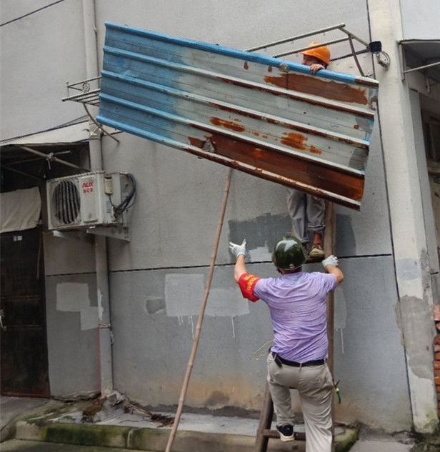 金钱寺社区城中村流动人口多,部分租户不愿意将以前的老物件丢弃,便堆放在楼道里,日积月累,杂物越来越多,不仅给居民的出行带来不便,也给居民的进出埋下安全隐患。清理楼道杂物刻不容缓,清运人员兵分两路,开展地毯式清理活动,清理城中村楼道、房前屋后的堆积物、拆除废旧雨棚、空调架子,规整私拉乱接电线等。
