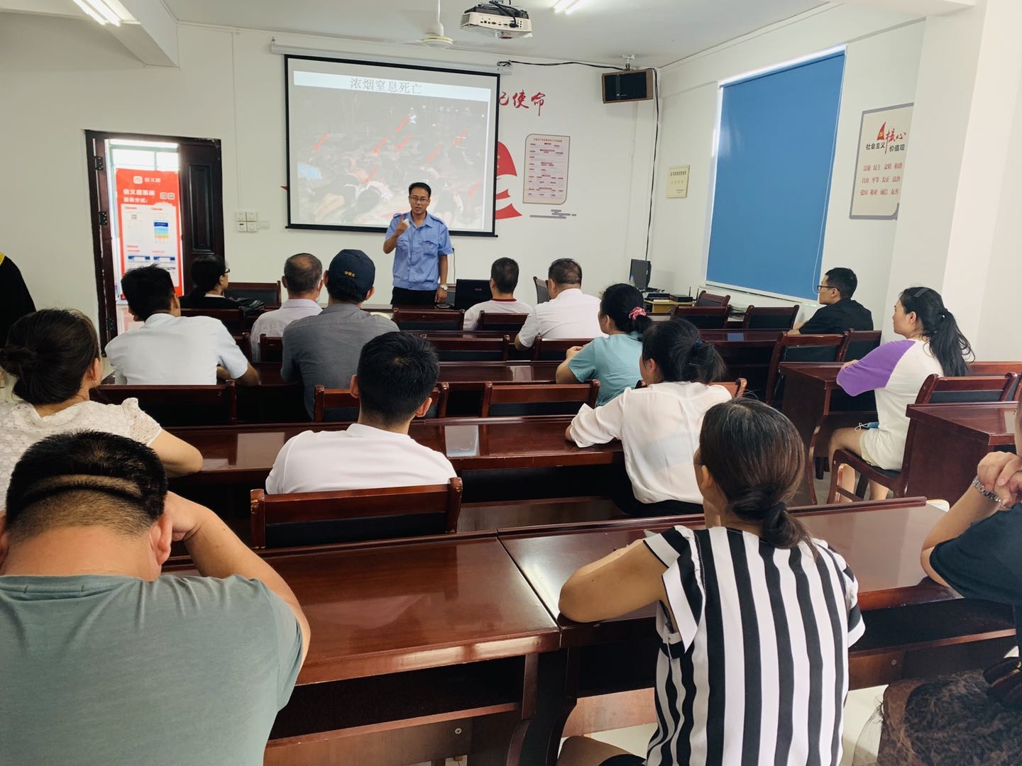 培训中,安磊防火中心的指导员陈冬详细讲解了易发生火灾的场所、火灾发生原因、日常中怎样预防火灾以及如何进行火场逃生自救、发生火灾时如何第一时间有效处置火情避免灾害产生,特别是针对辖区沿街店面餐饮店多的特点,详细讲解了餐饮起火的特点及处理方法。随后,他通过真实案例向大家展示了近年来国内发生的重特大火灾案例,通过那些深刻的画面、人员伤亡和财产损失数字,敲响了大家心中消防安全的警钟,让他们意识到消防安全工作的重要性。