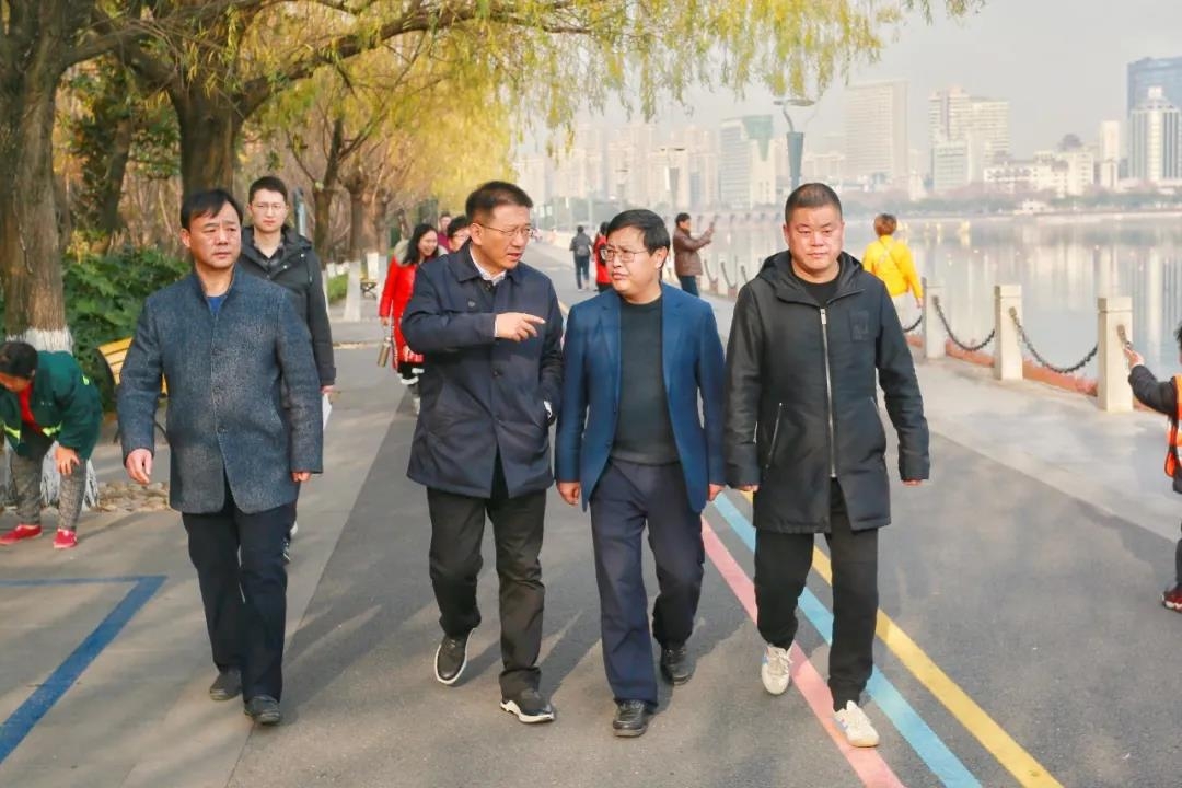 冬日暖阳下,国际友城公园内空气格外清新,武义江开发区段的水面微光粼粼,鸟儿不时掠过,泛起圈圈涟漪。武义江畔的绿道上,游人或步行,或慢跑,欣赏着这水清岸绿的如画景致。“河长制落实情况怎么样?”“水环境治理的措施有哪些?”张旭辉一行沿着江边绿道边走边看,实地检查水环境治理和污水零直排等情况。他在充分肯定武义江开发区段水环境治理成效后指出,治水工作既是市委、市政府部署的重点工作,也是广大老百姓对美好生活的热切期盼。虽然近年来开发区治水工作取得了一定成绩,但是工作还很多,任务还很重,各级河长要充分认识落实河长制工作的重要性和紧迫性,加强日常巡查,巩固治理成果,推动各项工作落到实处。要把“治水”向“智水”转变,探索构建“智慧治水”新模式。充分利用“智慧金开”等数字化平台,强化科学治污,充分运用现代科技手段,切实将河长的“管、治、保”责任落到实处。