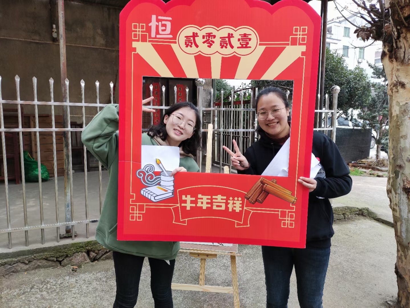 活动伊始,教师们沿着“牛”图在心愿板上郑重地签上自己的名字,寓意全体银湖人手牵手,心连心,2021工作生活一定“牛”。随后教师们按随机抽签顺序分批出发,他们手拿定向道具,穿梭在吕塘下村的各个打卡点。