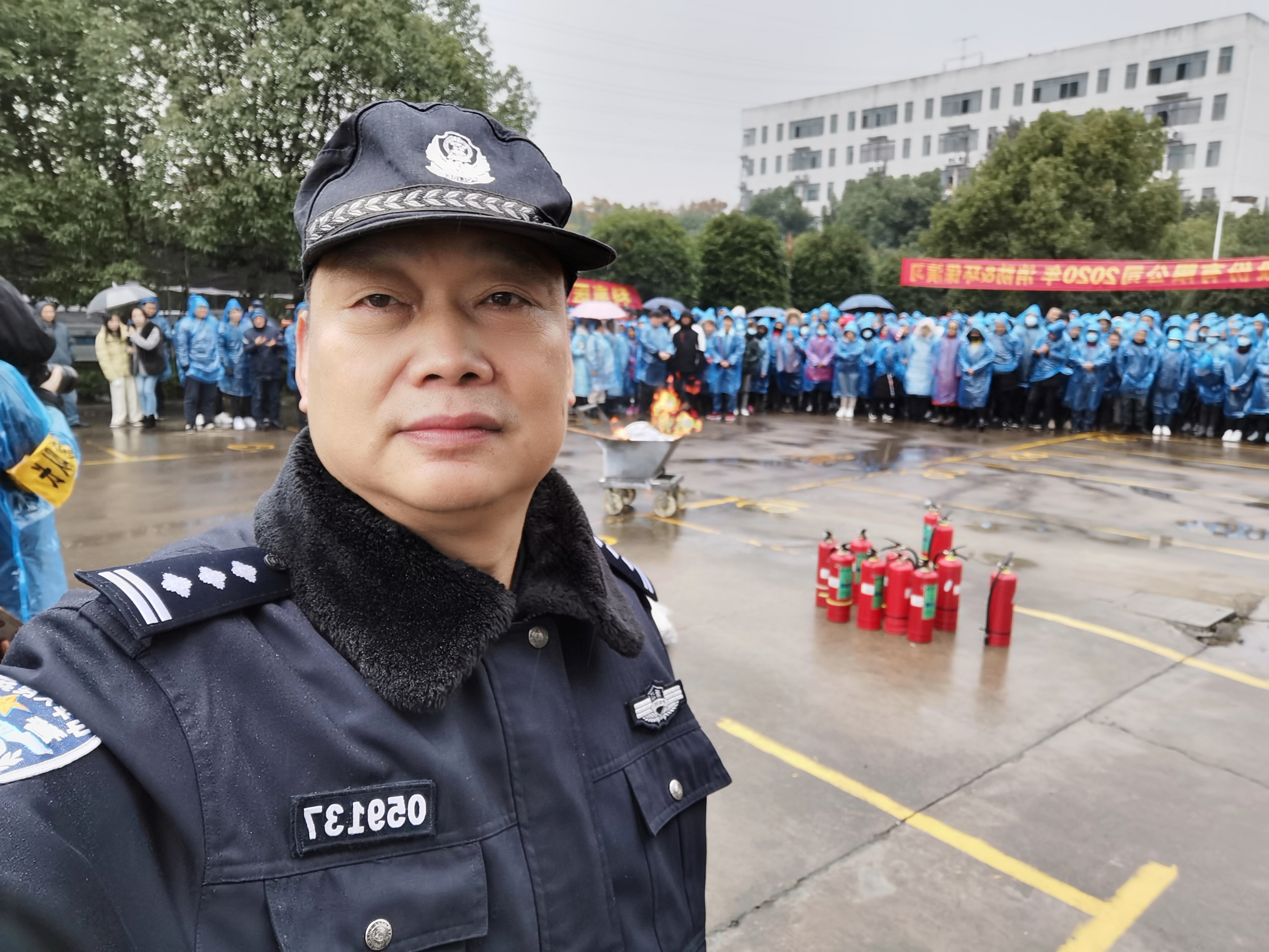 近日,一张蒋拥军在企业反诈的自拍照在网上流传,还上了新闻媒体。照片上,远处的人群都穿着雨衣,蒋拥军以此为背景拍了一张自拍照。原来,那是蒋拥军到辖区一企业为五六百名员工开展网络诈骗“面对面”宣讲和消防演习。