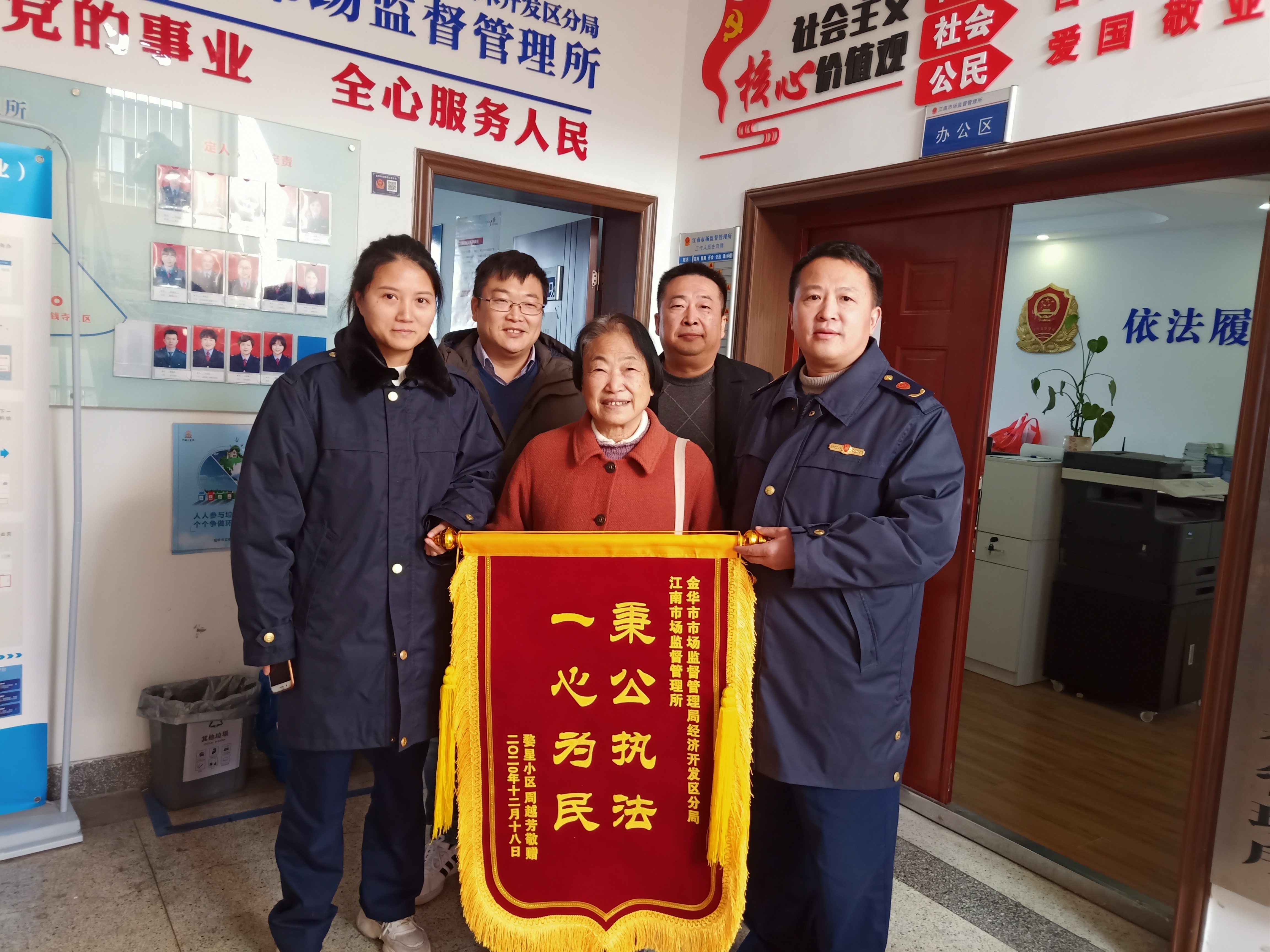 近日,市民周女士带着两个儿子将一面写着“秉公执法,一心为民”的锦旗送到开发区江南市场监管所,感谢工作人员在其遭遇保健食品骗局时秉公执法,为其解决纠纷并挽回经济损失数万元。