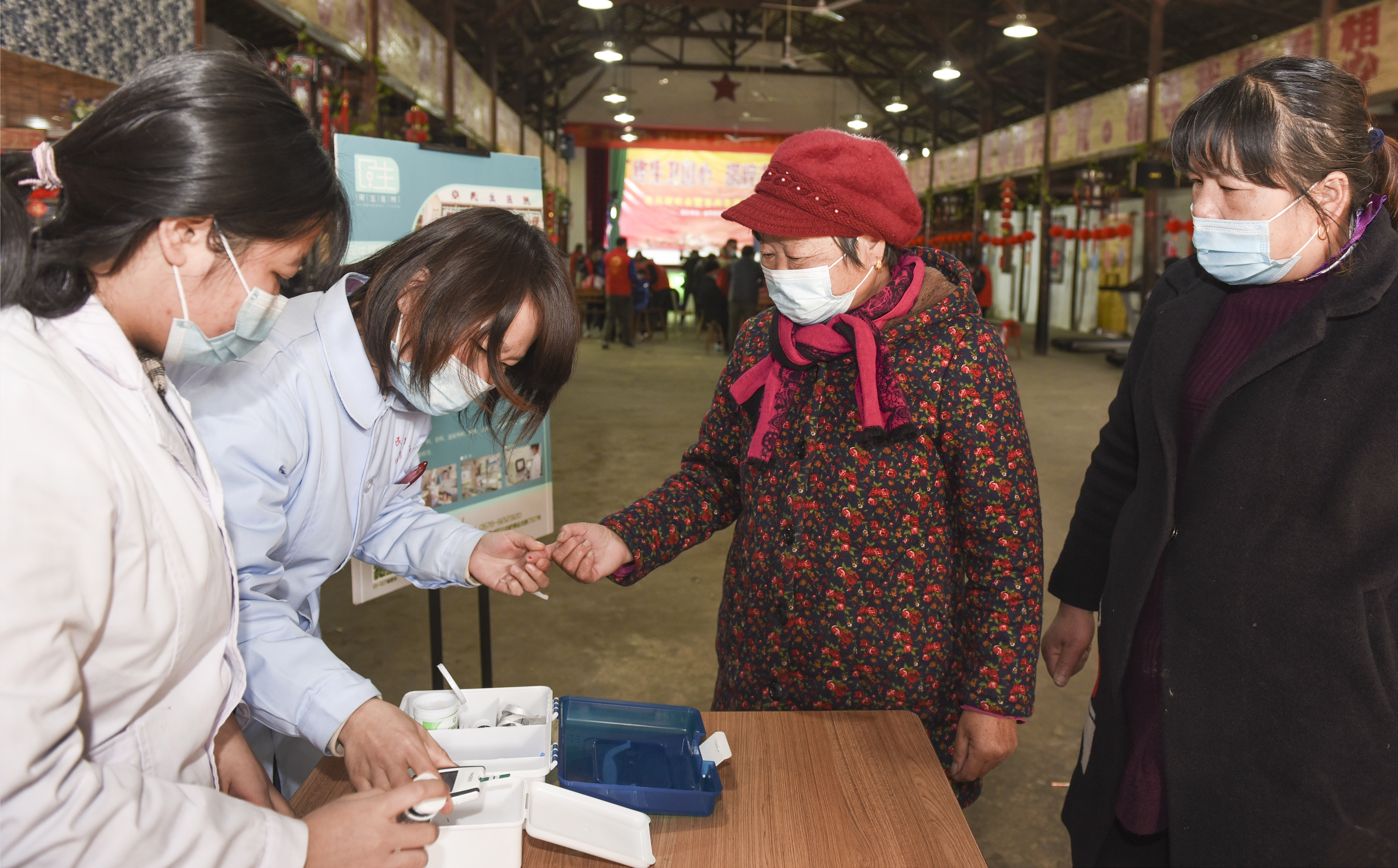 1月20日,在金华开发区罗埠镇上章村,市区幸福家人公益协会志愿者与医护人员给村民检查身体时,不断宣传普及与新冠肺炎疫情有关的科学知识和理念。据了解,春节是人口大规模、高速流动的特殊时期,为推动农村地区疫情防控,医护人员加强了对返乡人员的基本信息采集、体温检测和行为劝导,并高度重视农村“老弱病残”等易感群体。