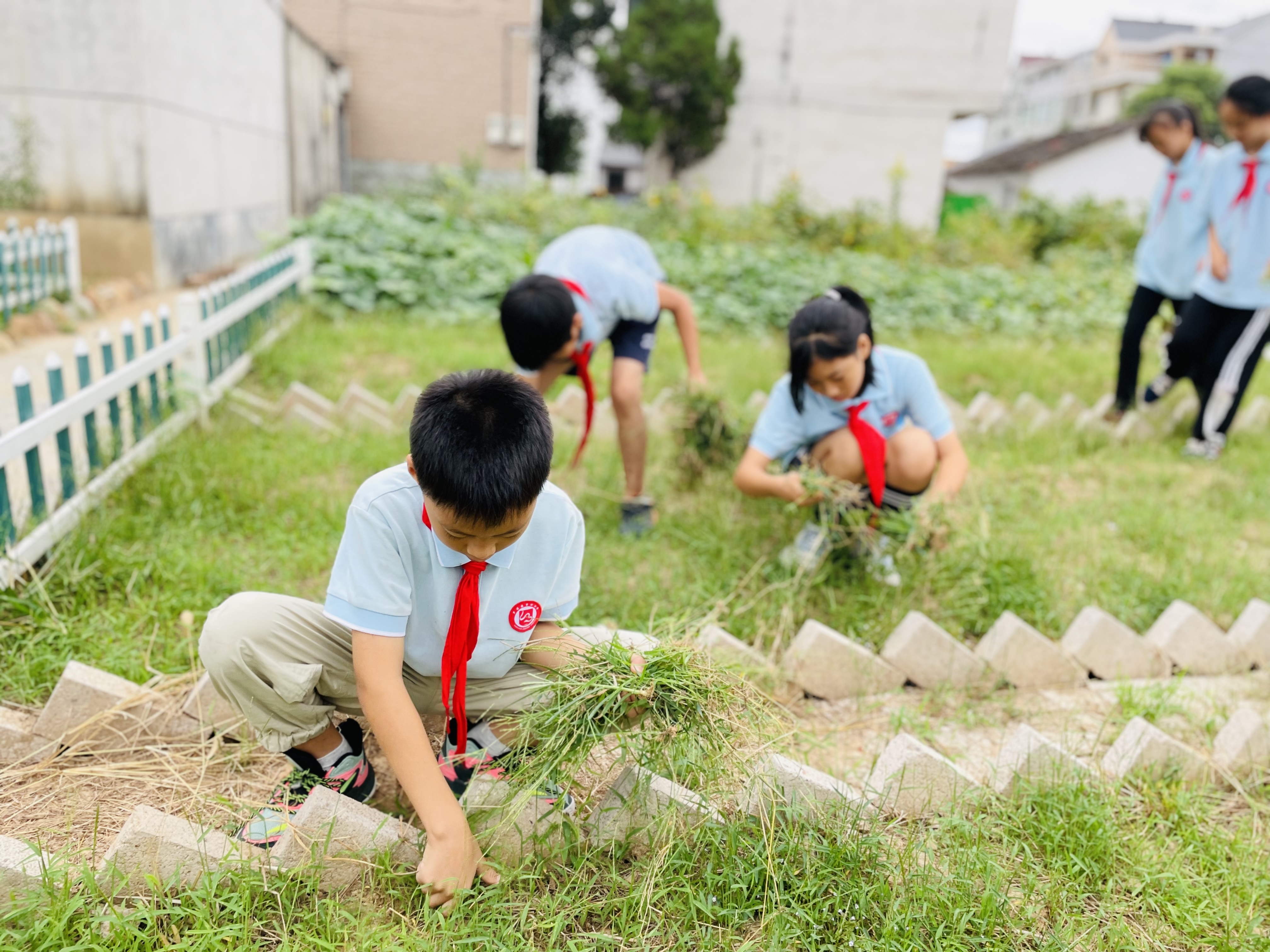 菜园里,孩子们如火如荼地除起杂草,还有几个孩子打扫门前卫生。看着平整的菜地和干净的院落,陈爷爷露出了开心的笑容。随后,孩子们还为陈爷爷带来了朗诵、武术表演等节目。