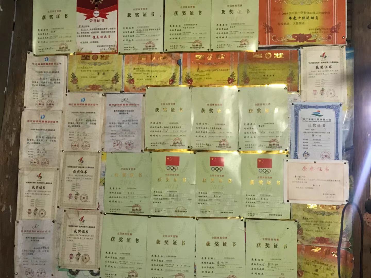 谈起儿子,父亲蔡红飞心中是既骄傲又愧疚。他说,儿子佳轩很努力也很争气,从小学到初高中,他在学校里一直都是小有名气,家里的墙上满满当当的都是儿子比赛获得的奖状,还有一大摞奖牌。但是,体育运动员的道路十分艰苦。为了训练,儿子平时也很少回家,有时也会向他抱怨童年没有快乐。“当时送他去练的时候也没想这么多,但每次看到儿子好不容易回家又要回去,心里也非常舍不得,为了这个事情我老妈每次都要骂我。”蔡红飞显得有些无奈。