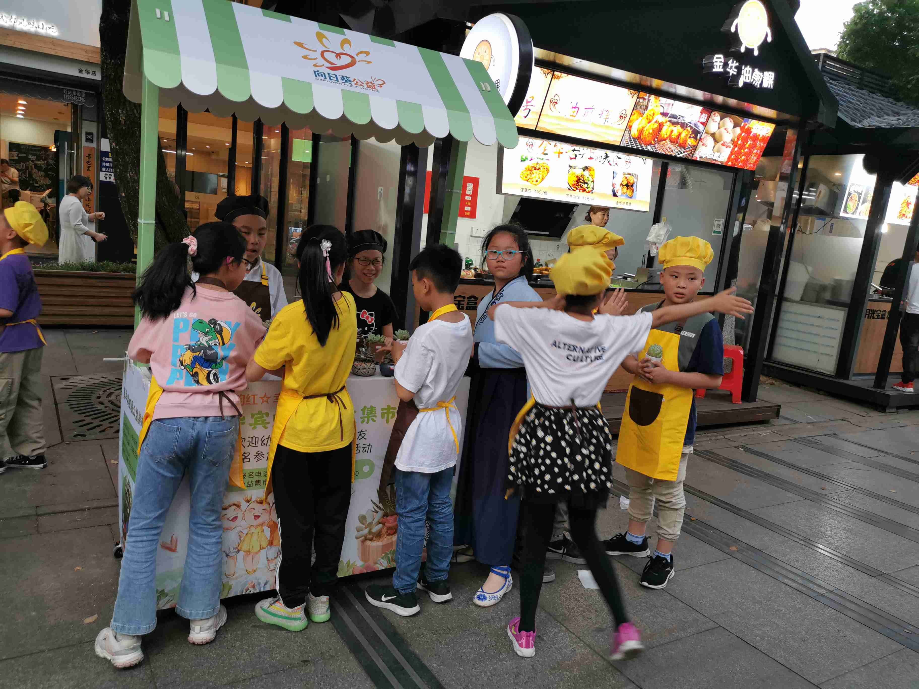 以上两幕是繁华宾虹圈活力提升项目中尚·公益板块的一个缩影。除了志愿服务队之外,社区还在兰溪街步行街设置中小学生社会实践岗,推出爱心义卖公益车给辖区中小学生提供社会实践。今年8月,东苑小学二(14)班邱奕涵和小伙伴们在银泰百货体验了一次小小导购员,此次活动获得企业和居民家长广泛好评。
