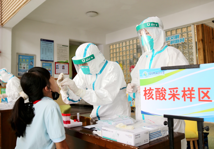 该方案规定,抽检范围包括开发区辖区所有中小学校(幼儿园),含民办学校;抽检对象覆盖在校学生及在职教师和职工(含保安、保洁、食堂、超市等工作人员);抽检时间为每两周抽检一次。同时,结合元旦、春秋季开学、清明、五一、端午、中秋、国庆等法定节假日,在师生返校后及时安排抽检,确保早发现、早诊断、早隔离、早治疗,切实排除风险隐患。各类学校(幼儿园)抽检按照“属地管理、就近就便”原则确定上门采样的医院,由学校做好协调工作。抽检方式采用新冠病毒核酸10合1混采检测方式,核酸采集由各医疗单位核酸检测机动队人员轮流进行,核酸检测由婺城区第一人民医院承接。