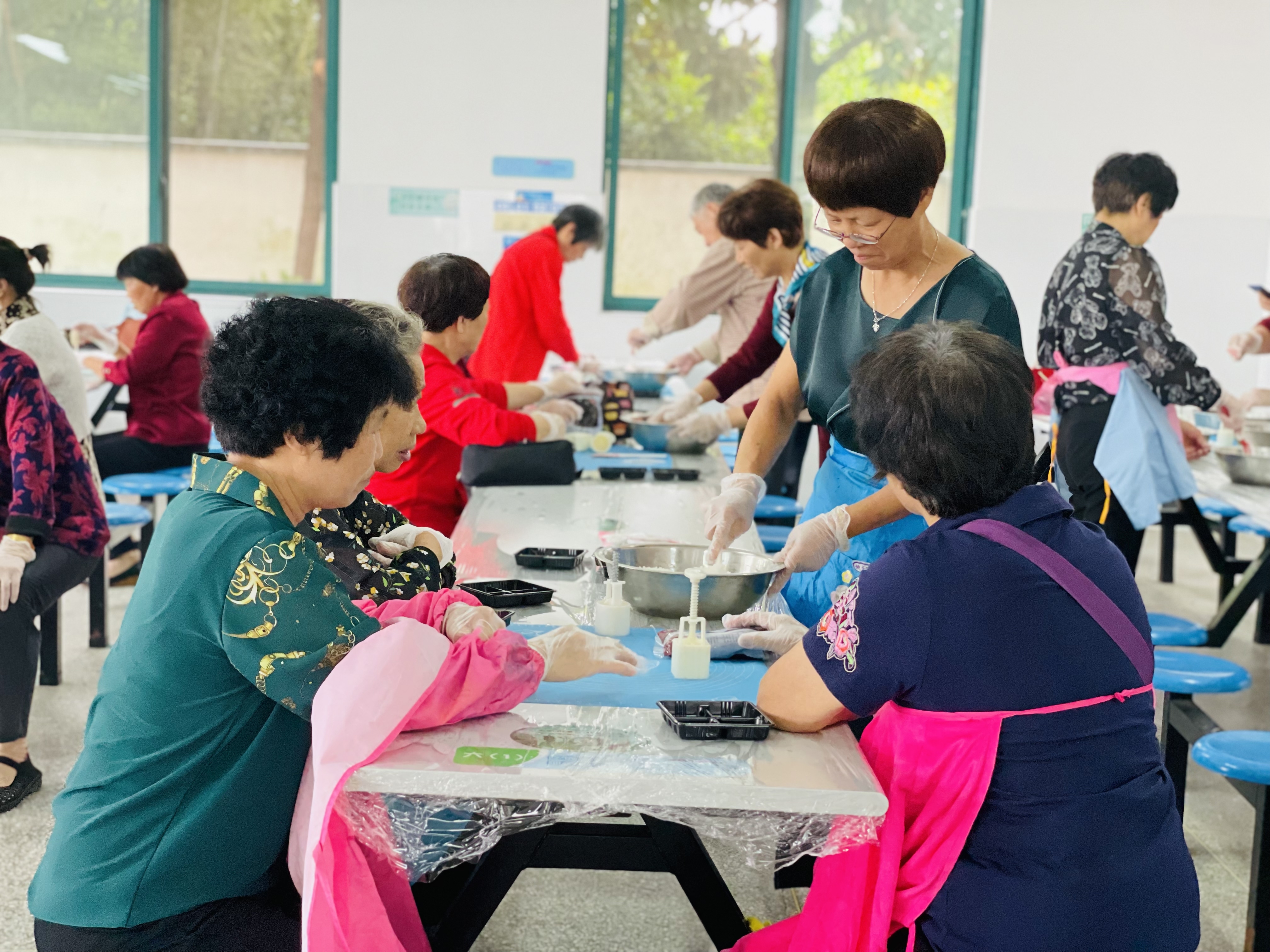随后,退休教师做糕点活动开始了。糕点是团圆必不可少的美食,为此,学校提前准备好做糕点的手套、模具、面团、馅料等材料,并进行现场教学。老教师们认真听完专业糕点老师的讲解后,开始制作美味的糕点。老师们捏一捏、揉一揉、按一按,把满满的幸福、快乐揉进香香的糕点里面。软糯的糕点,香甜的馅料,整个活动过程中都弥漫着诱人的香气。