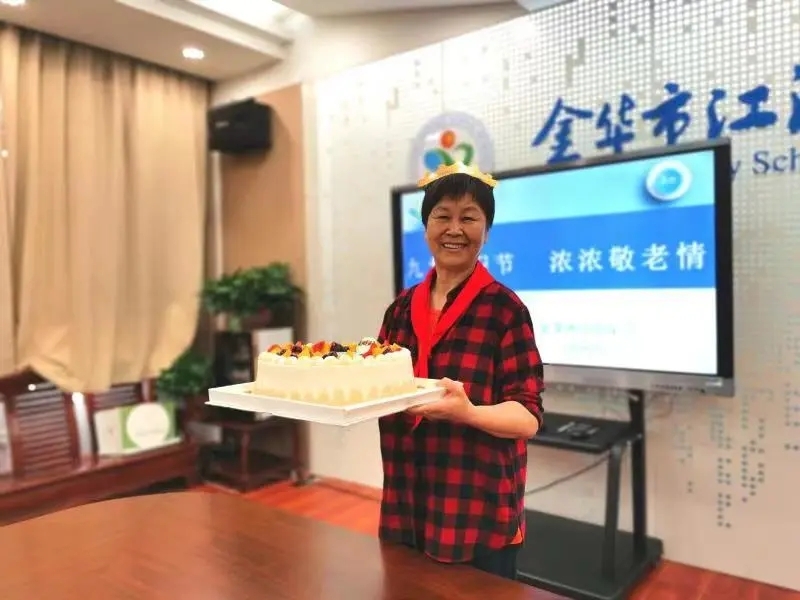 活动第二项是庆祝老教师沈怡怡的生日。学校工会成员为退休老师们送上杯杯热茶,让老教师们倍感温暖;摆上可口的水果,节日的氛围更浓了。华建勇代表学校党支部、行政、工会及全体师生,向寿星致以最诚挚的问候,向全体退休教师致以节日的问候和祝福,感谢退休教师为学校发展付出的辛勤劳动。沈老师亲手切下寓意长寿安康、幸福美满的蛋糕,大家一起分享甜蜜的蛋糕。会上,退休教师们畅所欲言,建言献策,追忆往事,互相祝愿。