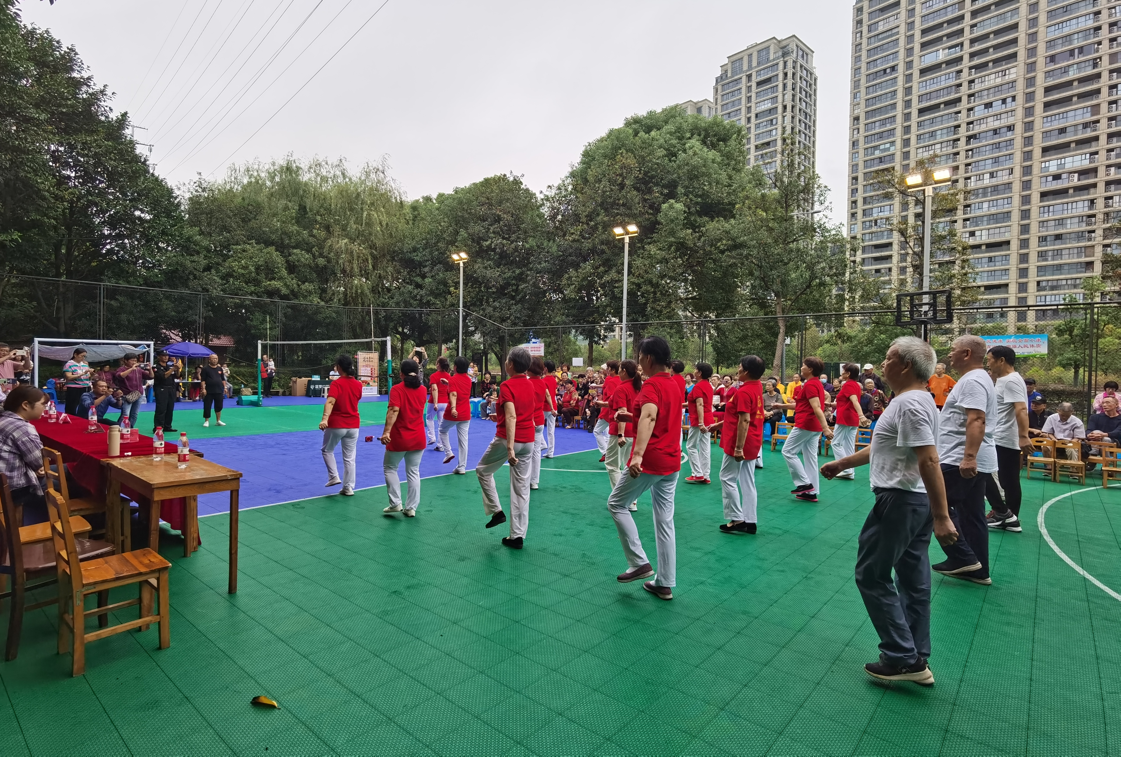 10月14日,三江街道项宅社区党委联合保集半岛老年协会、保集半岛业委会在保集半岛球场举办重阳节邻里活动。