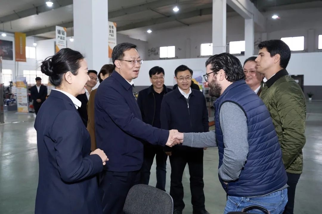 近年来,脉链集团不断探索新技术、新业态、新模式,为产业链上下游提供科技创新、海外服务等共享服务平台。朱重烈走进脉链集团联创中心,听取“科产贸”服务平台介绍,详细了解研发创新情况和b2f供应链共享模式。他希望脉链集团充分发挥平台优势,加强研发创新,积极打造“产业联盟”,带领产业链上下游企业联合出海、共同成长。各级各部门要强化“一企一策”精准帮扶,总结提炼“科产贸”一体融合的经验做法,加快推动企业数字化转型,提升核心竞争力。调研中,朱重烈还与来企洽谈的厄瓜多尔、坦桑尼亚客商交谈。得知厄瓜多尔客商去年从金华采购了50个集装箱产品、今年打算与脉链集团建立合资公司,坦桑尼亚客商与脉链集团建立长期合作关系时,朱重烈对他们表示欢迎,希望各方深化务实合作,努力实现互利共赢。