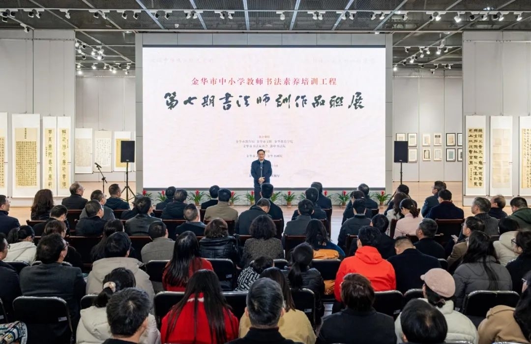 市委常委、宣传部部长吕伟强,市中小学教师书法素养培训工程师资总召集人杨守春等出席。联展活动公布了第七期书法师训优秀学员名单,为优秀学员代表颁奖,丽泽中学、义乌市苏溪镇第一小学负责人作发言。
