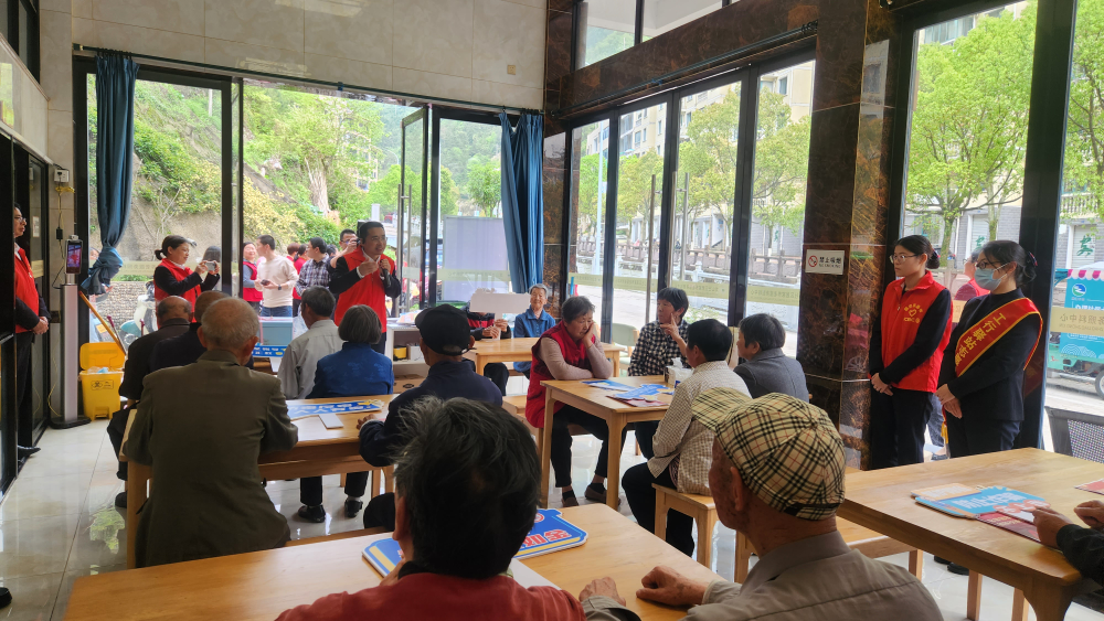 图为磐安支行工行驿站志愿者团队前往居家养老中心宣传反诈工作