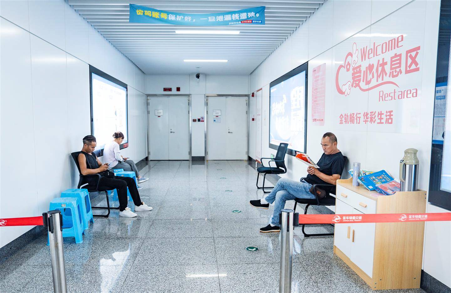 据了解,本次升级覆盖了金华轨道交通全线12个地下车站,进入站厅层,就能轻松找到“爱心休息区”,该休息区提供免费热水、一次性雨衣,并增加杂志、名著等各类读物,供纳凉休息的市民,以及环卫工人、快递人员、外卖骑手等户外工作者休息、阅读。