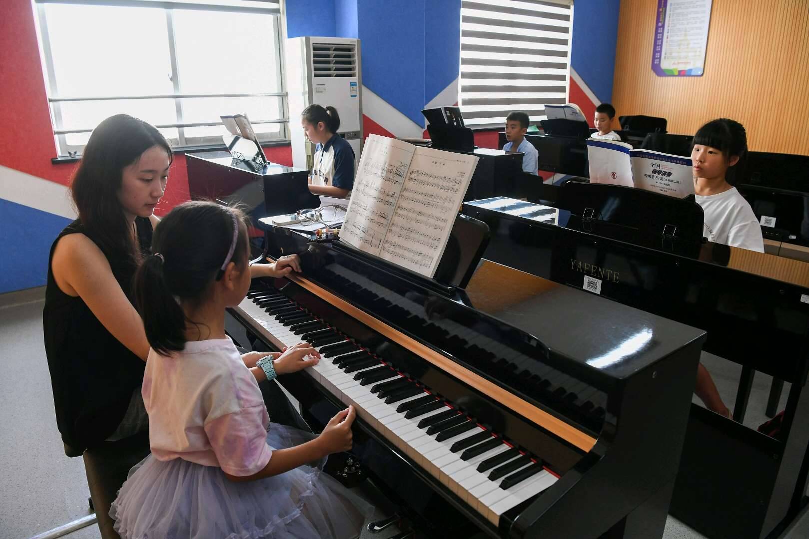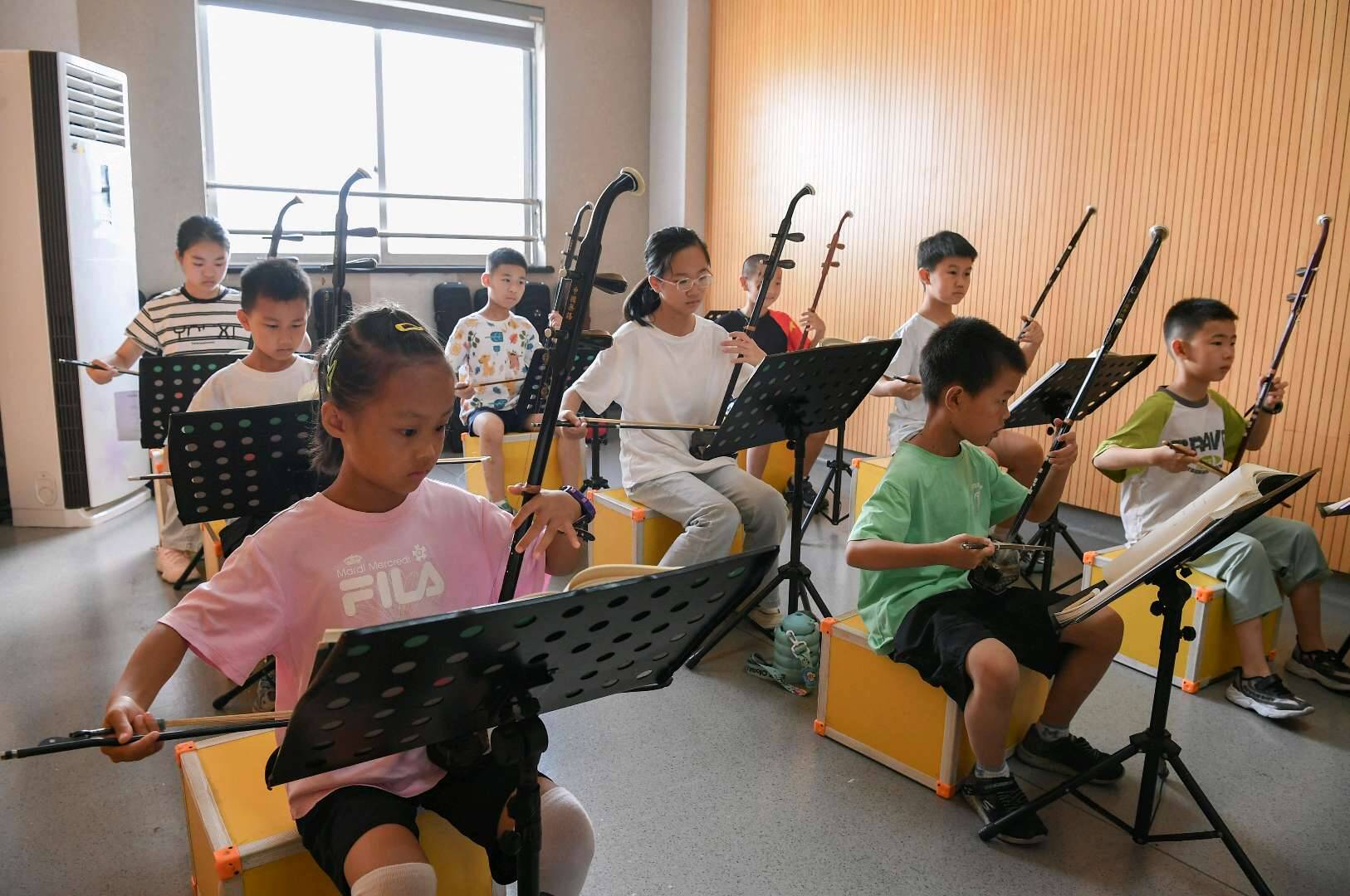 7月11日,在金华市青少年宫,孩子们根据自己的兴趣爱好,参加器乐、舞蹈、绘画、演艺等丰富多彩的暑期兴趣拓展活动,提升艺术素养,丰富暑期生活。