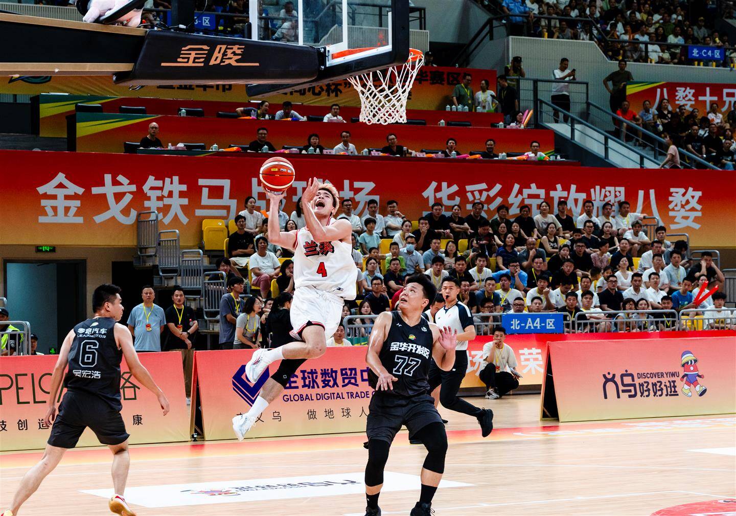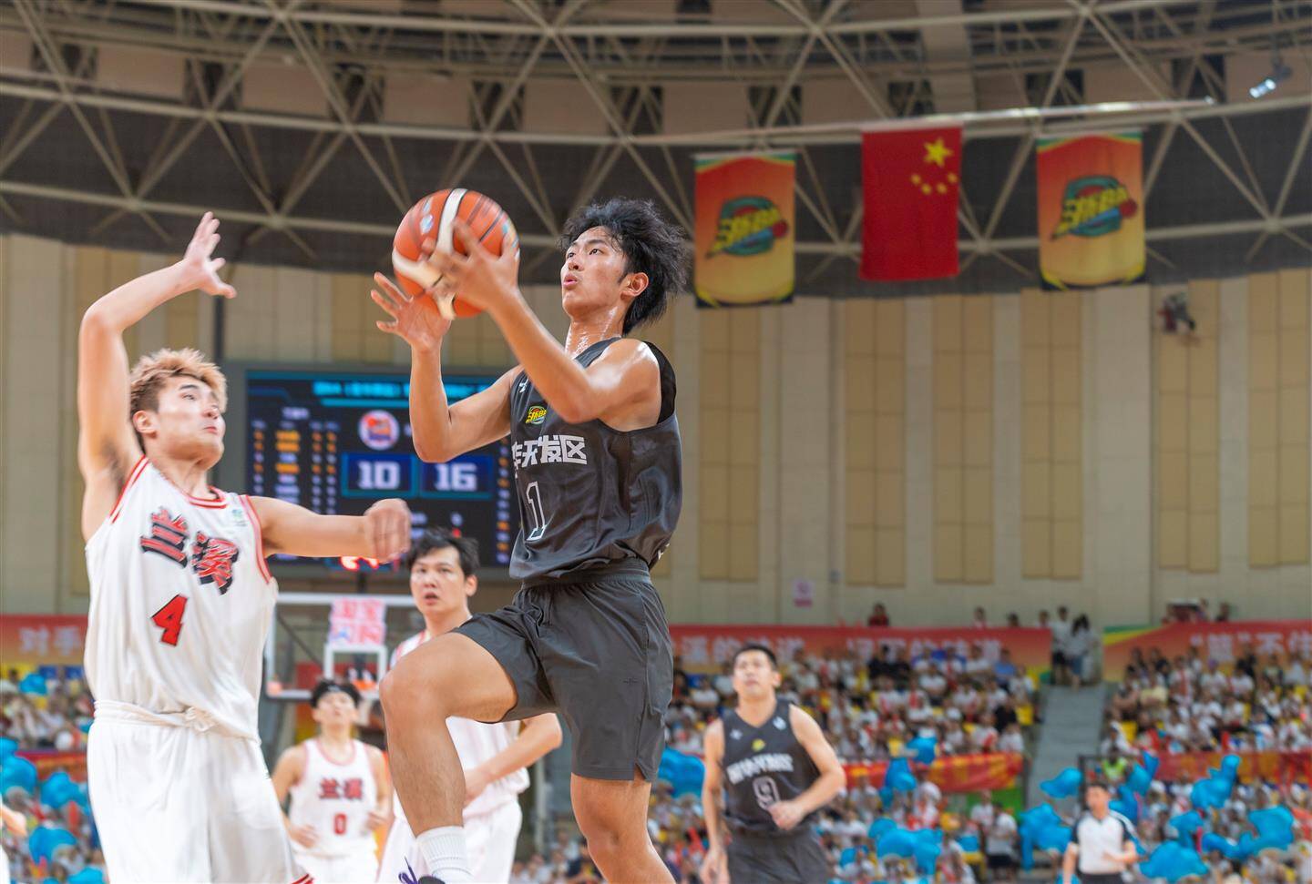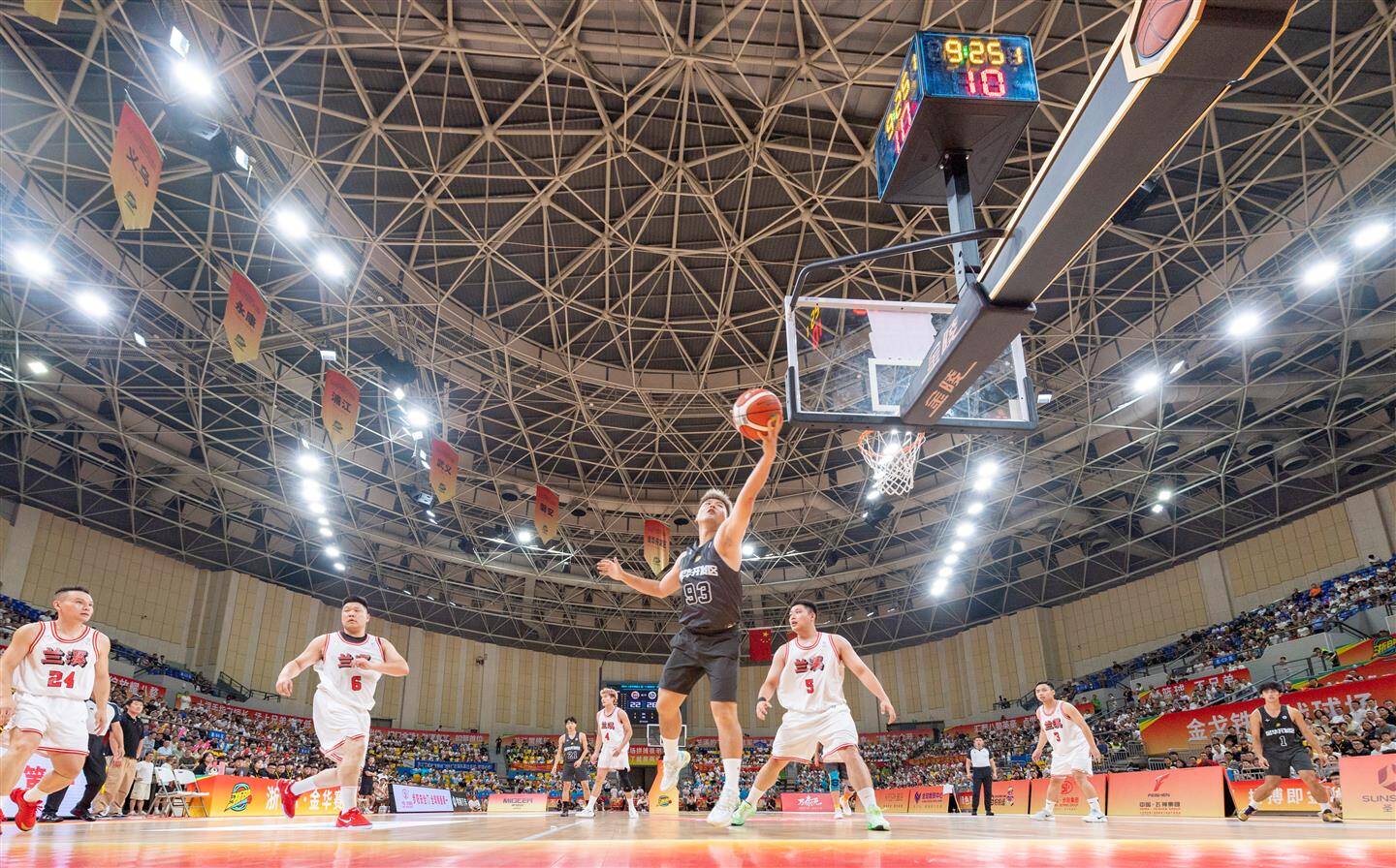在兰溪队与金华开发区队的碰撞中,双方攻守胶着。在第一节比赛中,两支队伍都以精准的投篮不断撕扯防线,兰溪队率先投入一球,金华开发区队很快还以颜色,首节结束金华开发区队以26∶20领先。后续比赛,双方球员渐入佳境,你来我往,比分胶着。33平、35平、37平……兰溪队几度追平金华开发区队,并在第二节哨声响起时实现反超。下半场双方球员状态不减。金华开发区队顶住分差压力,以流畅的传球频频得分,投出的三分球赢得全场喝彩。兰溪队也不甘示弱,稳住攻防节奏,打出精彩的快攻上篮,保持比分优势,最终以89∶66收获首胜。