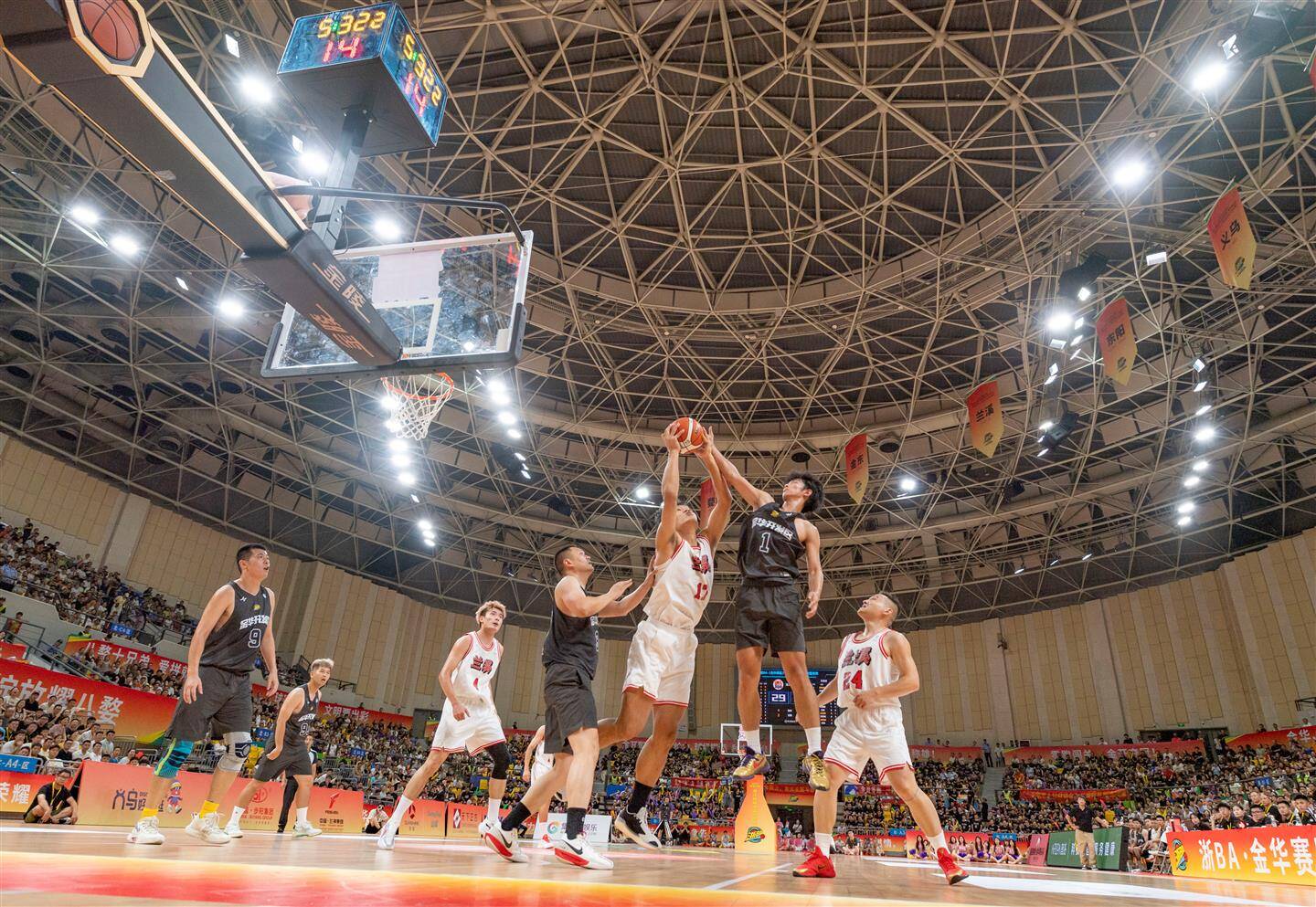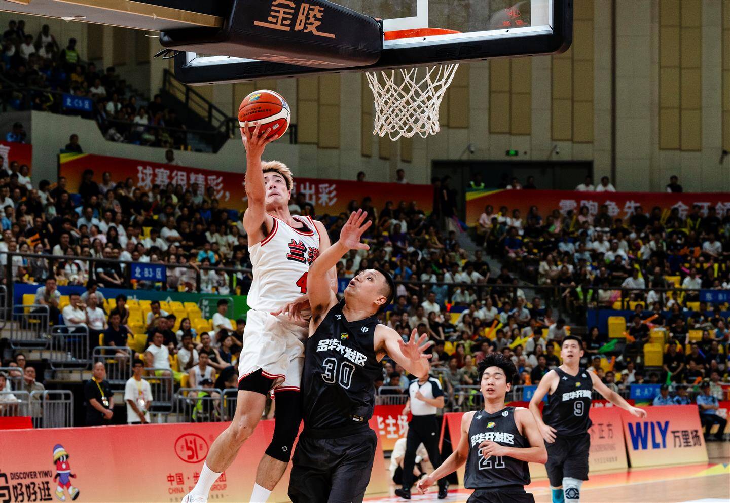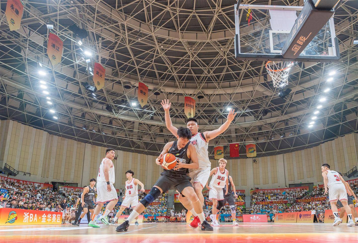 在兰溪队与金华开发区队的碰撞中,双方攻守胶着。在第一节比赛中,两支队伍都以精准的投篮不断撕扯防线,兰溪队率先投入一球,金华开发区队很快还以颜色,首节结束金华开发区队以26∶20领先。后续比赛,双方球员渐入佳境,你来我往,比分胶着。33平、35平、37平……兰溪队几度追平金华开发区队,并在第二节哨声响起时实现反超。下半场双方球员状态不减。金华开发区队顶住分差压力,以流畅的传球频频得分,投出的三分球赢得全场喝彩。兰溪队也不甘示弱,稳住攻防节奏,打出精彩的快攻上篮,保持比分优势,最终以89∶66收获首胜。