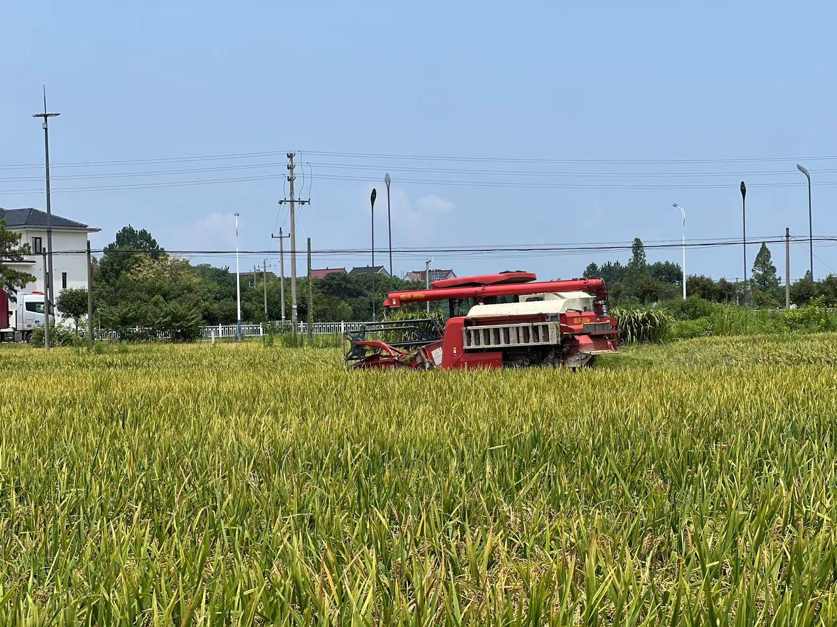 测产组的领队、市农业技术推广与种子管理中心干部徐晶晶蹲下身子,就近折了一把谷穗。只见她熟练地揉搓,稻谷便脱粒落在手心。她掂了掂重量,数了数粒数,满脸喜悦:“籽粒饱满得很,今年亩产预计可观。”话音刚落,收割机下田。在震耳欲聋的轰鸣中,金色稻浪被迅速卷起,短短十几分钟,收割机的谷仓就装满了稻谷,只留下齐整的稻茬在蒸腾的热气里静默伫立。