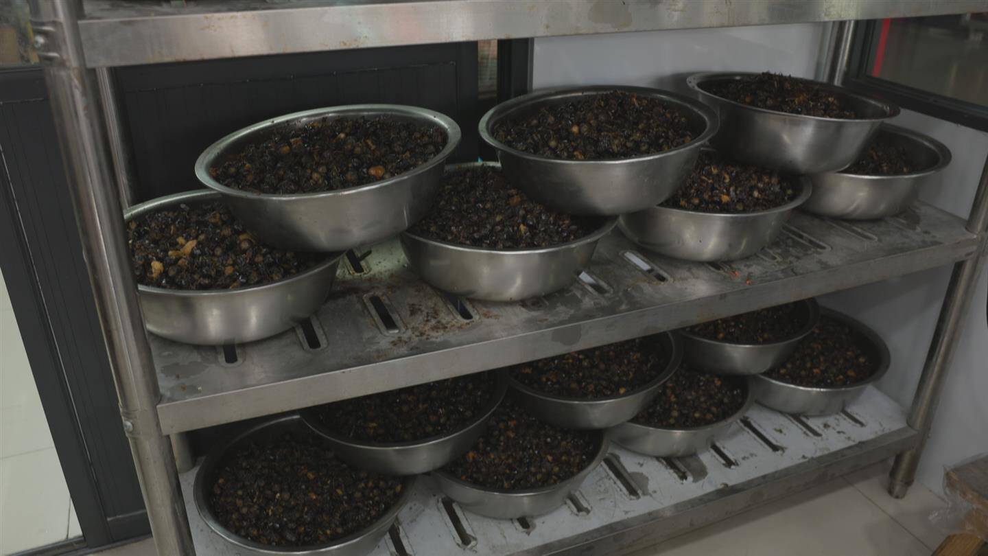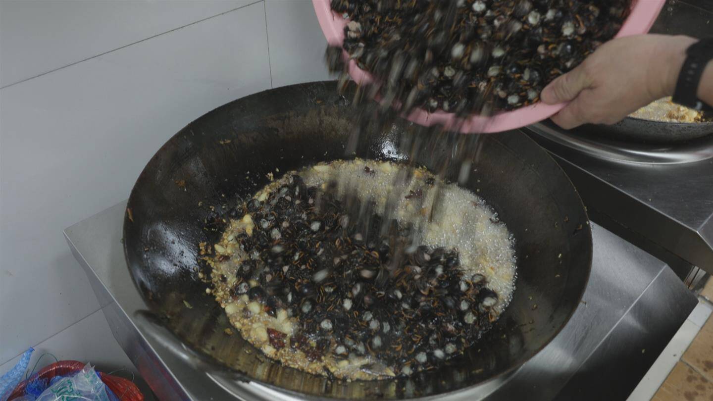 知了专卖店负责人应长水介绍,目前正值知了的销售旺季,每天需炒制200多锅,约1200斤。“从早上5点一直炒到晚上7点,几乎没有停歇。”应长水说。