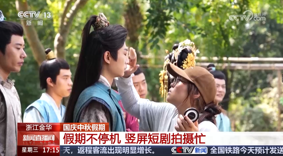 ●【假期不停机 竖屏短剧拍摄忙】10月8日,央视《新闻直播间》播出:《浙江金华丨假期不停机 竖屏短剧拍摄忙》。走进横店影视城华夏文化园,一路上都是剧组忙碌拍摄的场景。《微短剧产业研究报告》显示,2024年,我国微短剧市场规模已攀升至505亿元,首次超过全年电影票房收入,预计2025年市场规模将达到634.3亿元。>>>阅读原文