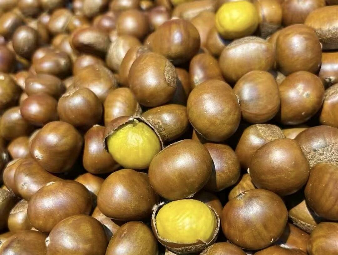 老板娘黄红梅已经在金华卖了19年板栗,她家主打迁西板栗。迁西基地一般在每年的8月28日开始零星采摘,9月5日至15日进入旺季,采摘后人工筛选再冷库锁鲜,控制温度湿度让板栗自然糖化半个月,无需添加任何东西便自带香甜。黄红梅介绍,板栗在冷库存放会有腐烂损耗,到店后还要剔除霉变果子,再用机器加沙子炒制,出锅前放麦芽糖,只为裹走表皮灰层和细毛,让栗子干净光滑。