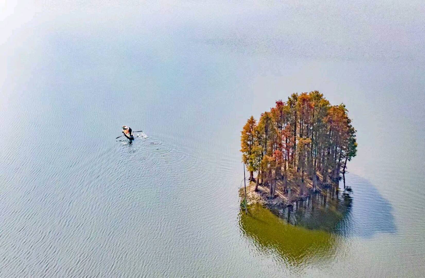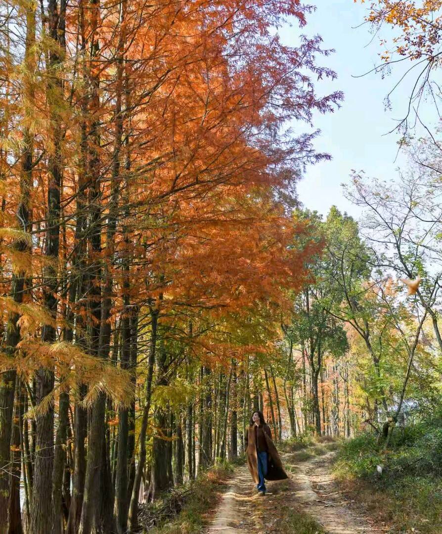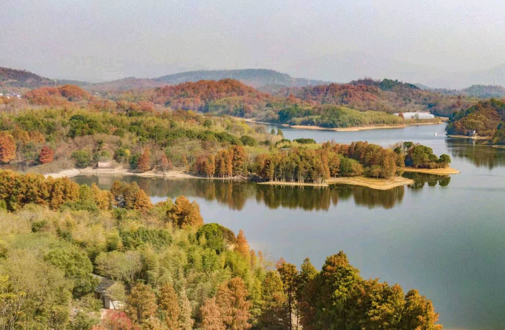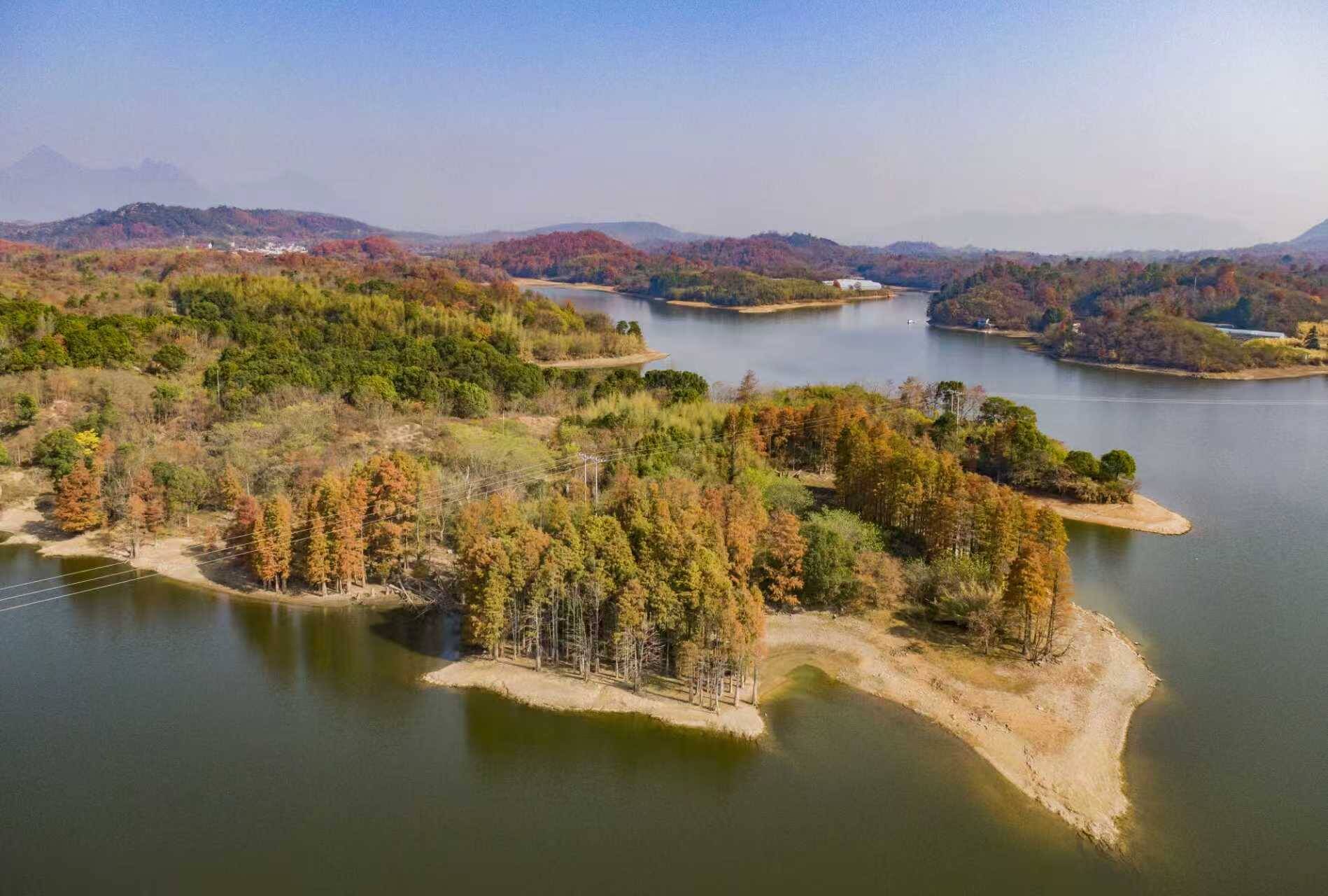 12月1日,位于兰溪市永昌街道的东风水库,成片的水杉树叶片逐渐变红,呈现出缤纷多彩的美丽图景,进入了一年中的最佳观赏期,吸引了各地游客拍照打卡,穿行于林间赏景游玩,乐享生态之美。