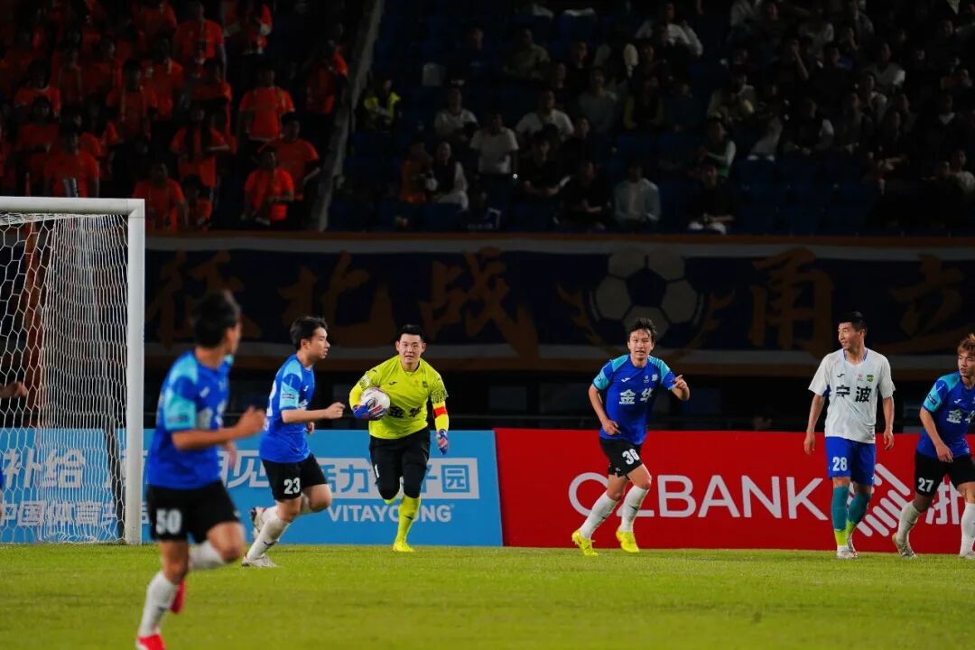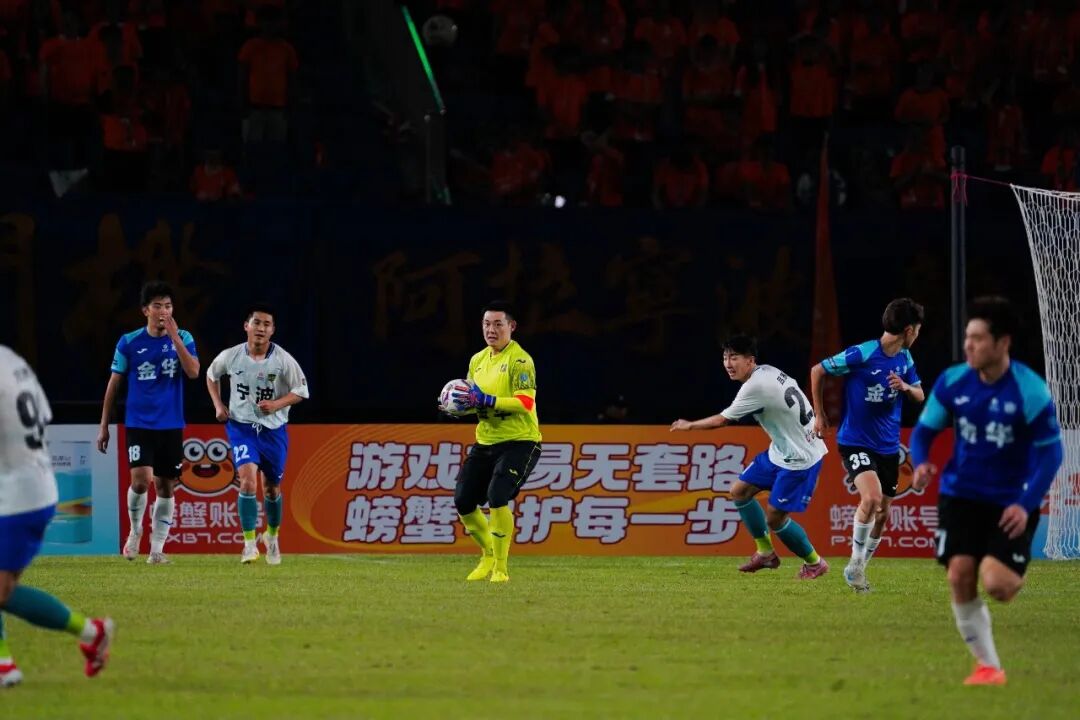 第11分钟,金华队一脚射门迫使宁波队门将托球出界,随后金华队开出角球,皮球在禁区制造混乱,可惜被对方门将没收。此后小伙子们拼劲十足,持续向对手施压,并连续获得角球机会,形成多次射门,其中一次皮球砸在门柱上弹出,金华队与进球失之交臂。