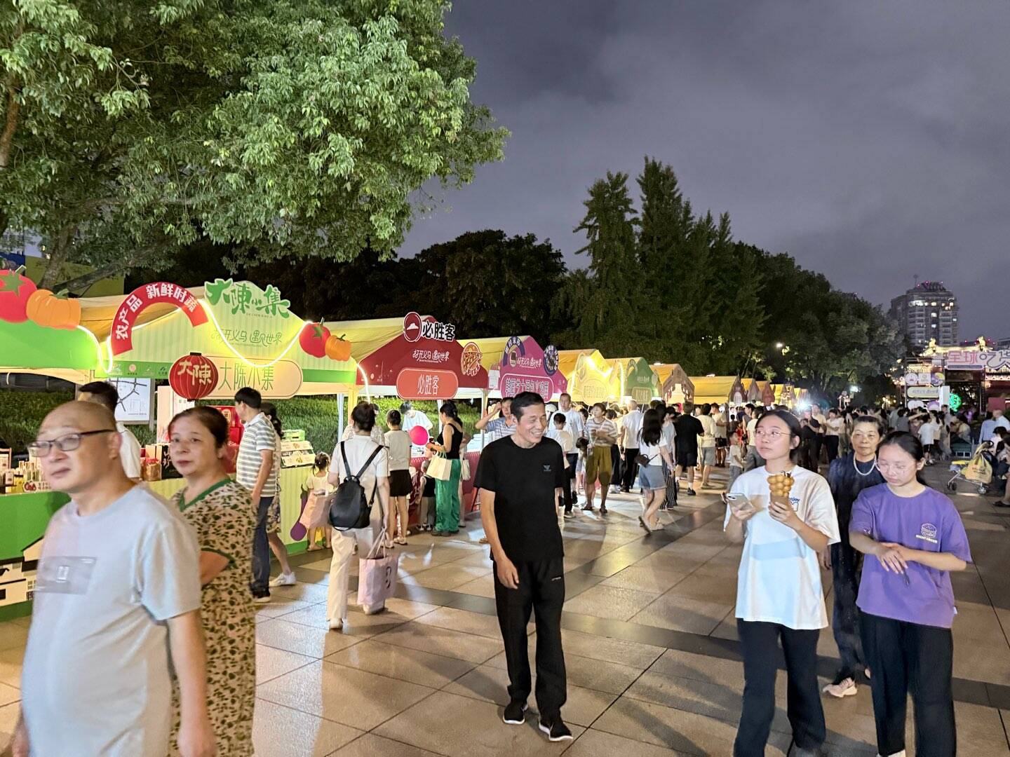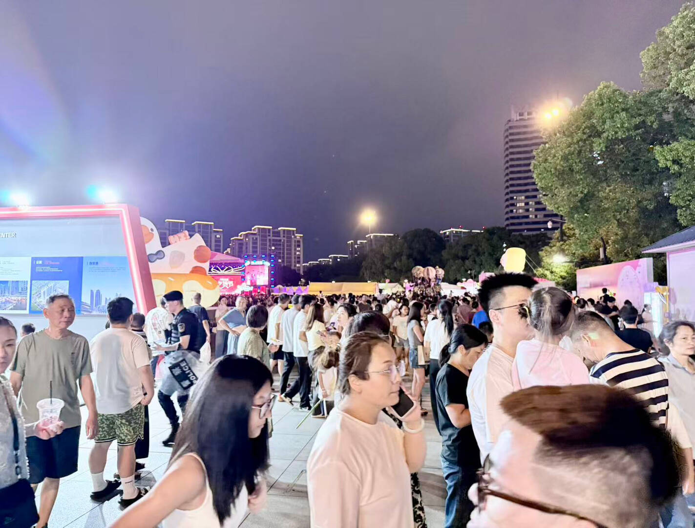 当晚,绣湖广场人潮汹涌,节日氛围拉满。“全球吃货市集”汇聚异国风味与本土特色,中外美食各个摊点都挤满人,市民、游客边吃边逛,品尝中外不同风味的各式小吃。世界饼艺秀、饼艺大师手工坊、画饼大赛等趣味活动接连上演,现场还有中外歌舞表演,各种互动打卡游戏,尽饱口福、眼福。