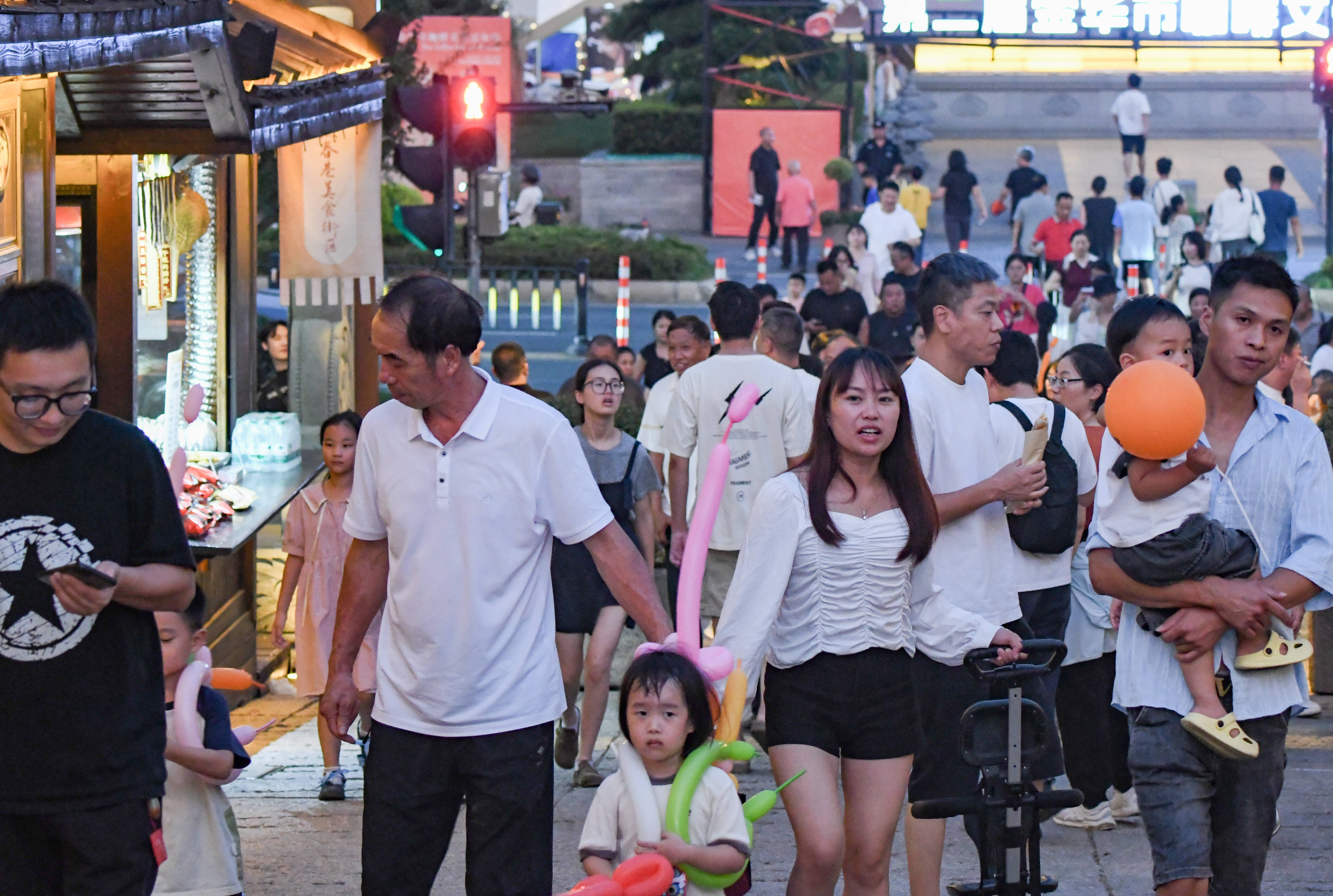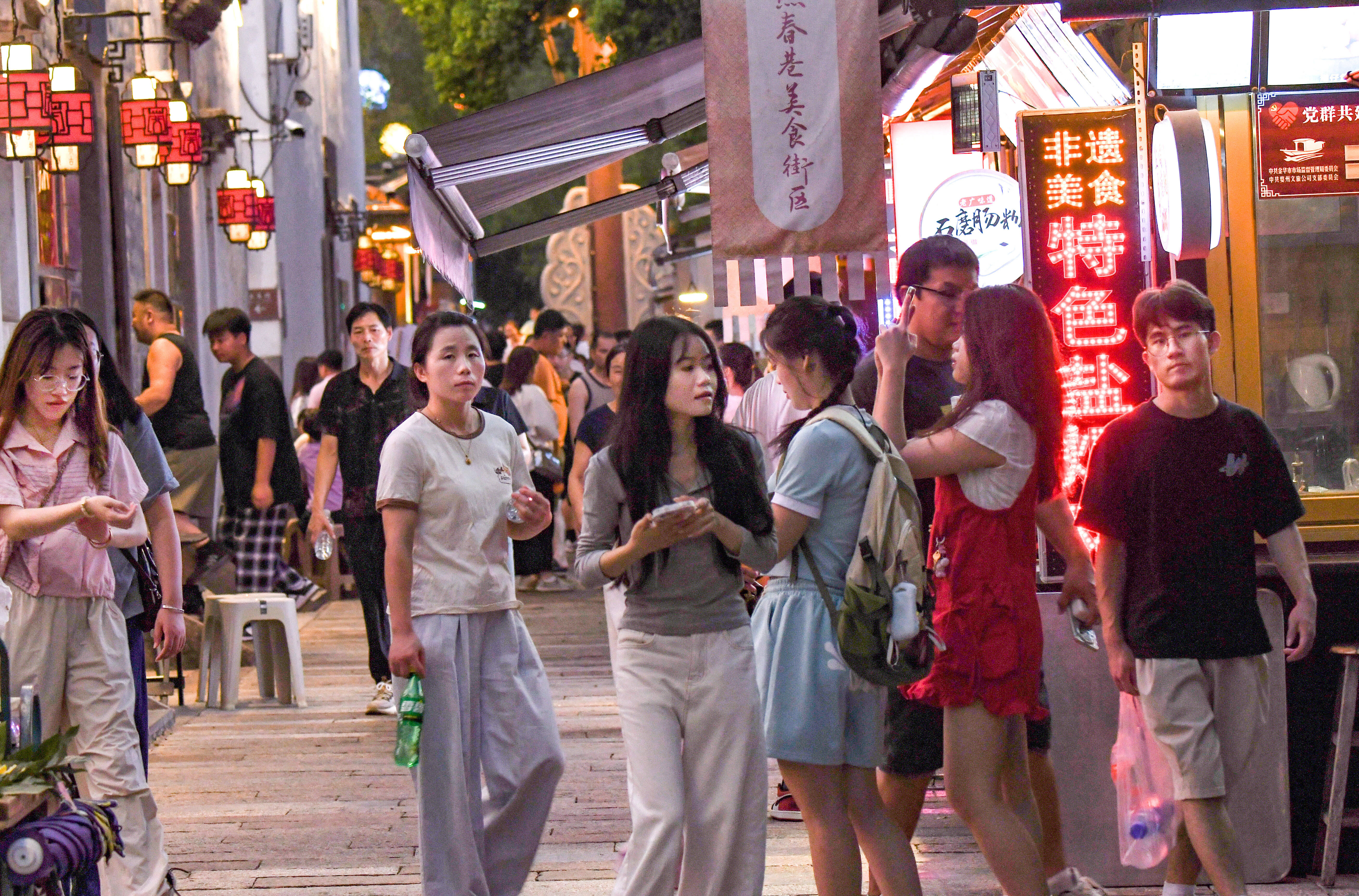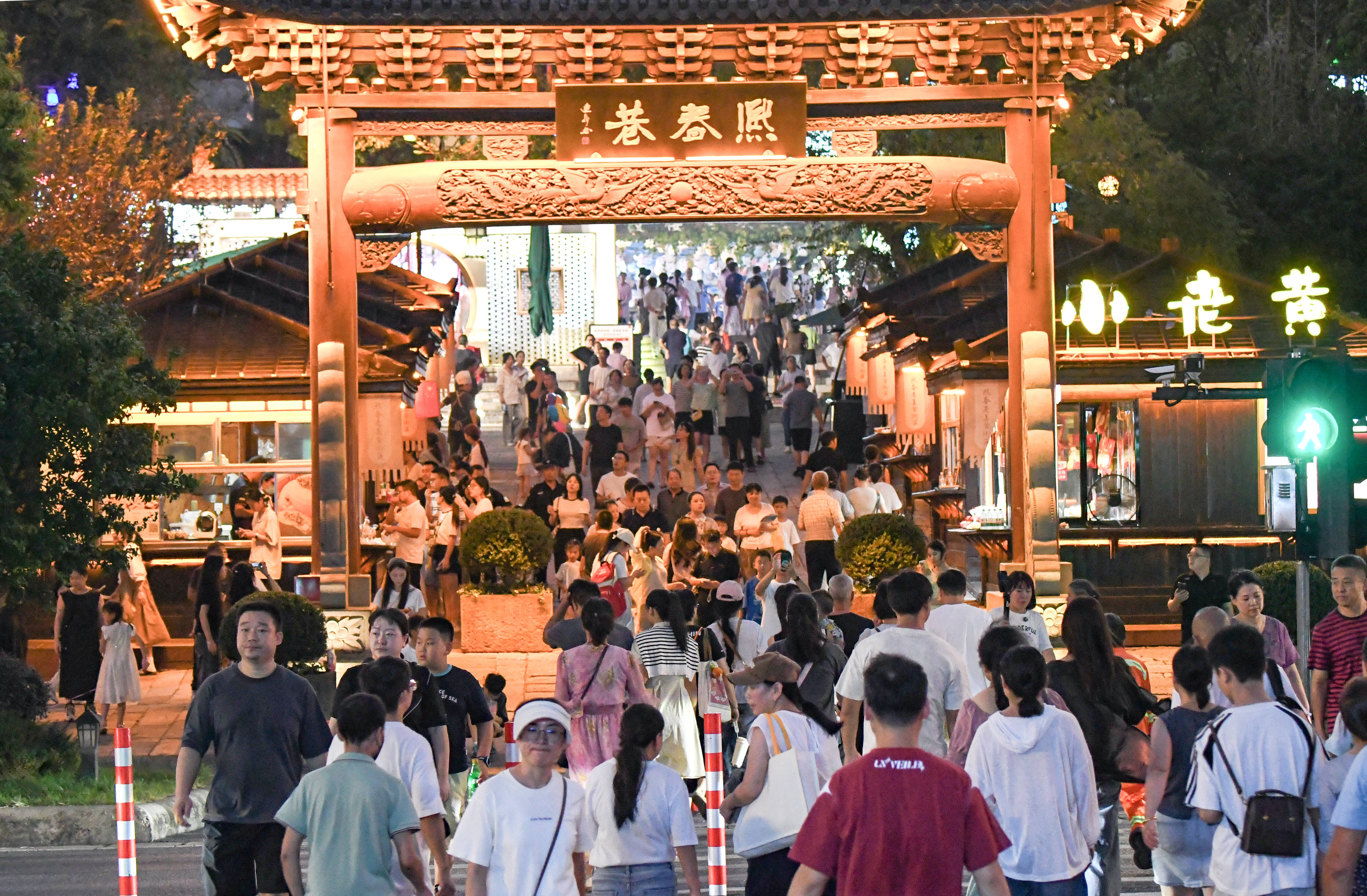 10月12日晚,婺州古城灯火依旧璀璨,游人如织的盛况并未因国庆假期结束而减退。在五彩斑斓的灯光下,游客们穿梭于特色摊位之间,品尝美食、选购文创产品,古色古香的建筑与现代商业交融,仿佛让人穿越时空。