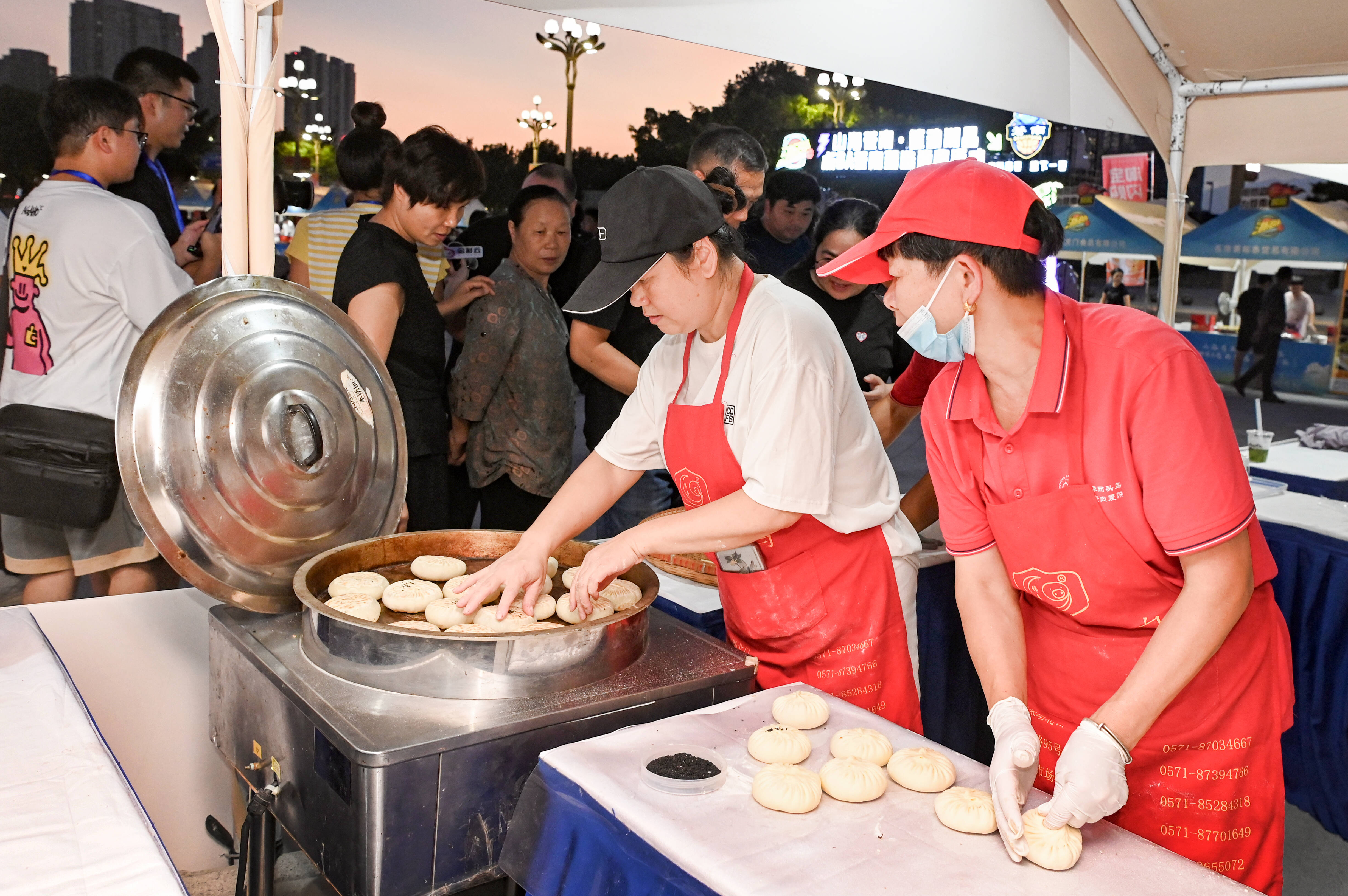 近日,在温州苍南县体育中心外,永康肉麦饼吸引了不少市民购买品尝。随着“浙BA”永康队征战各地,这款特色美食也走向四方,迎来销售热潮。