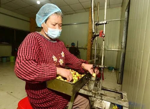 而蜜枣的制作,又是另一番光景。首先要用专用的小刀在我身上划出细密的纹路,就像给我做了一件“镂空衣裳”,这样煮糖的时候才能更好地入味。然后,我会和白糖一起下锅熬煮,直到糖分慢慢渗透到每一寸果肉里,再经过反复烘焙,最后变成琥珀色、外裹糖霜的蜜枣。骆红卫说,以前做蜜枣全靠手工划丝,一天下来手都酸了,现在有了机器帮忙,效率提高了不少,但划丝的深度和密度,还是得靠人工把控,不然就出不来“缕纹如丝”的效果。