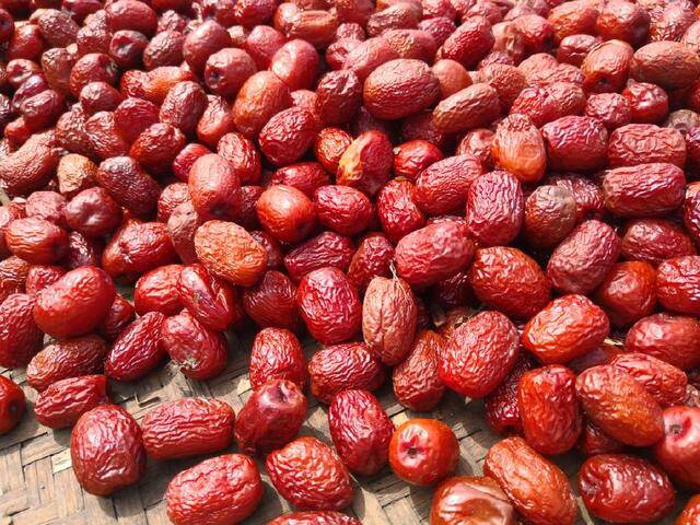 清朝乾隆年间,我迎来了人生的高光时刻——被钦定为贡品,赐名“京果”。据说当时的官员们为了挑选上贡的枣子,要从每棵树上精挑细选颗粒重16克以上的果实,再经过数十道工序加工成乌黑发亮的南枣。那时的我,不仅是果腹的零食,更是义乌人走亲访友的“硬通货”,与火腿、红糖并称为“义乌三宝”,在《中国名产》里留下了“江南枣中,佳品是义乌南枣”的赞誉。