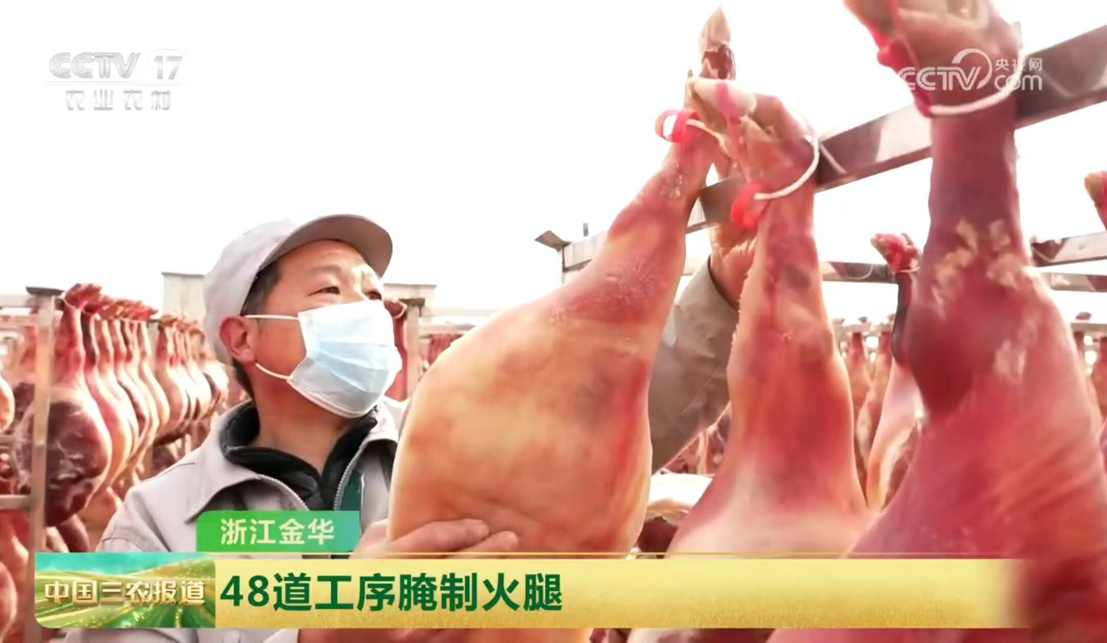 11月8日,央视《中国三农报道》关注金华48道工序腌制火腿。