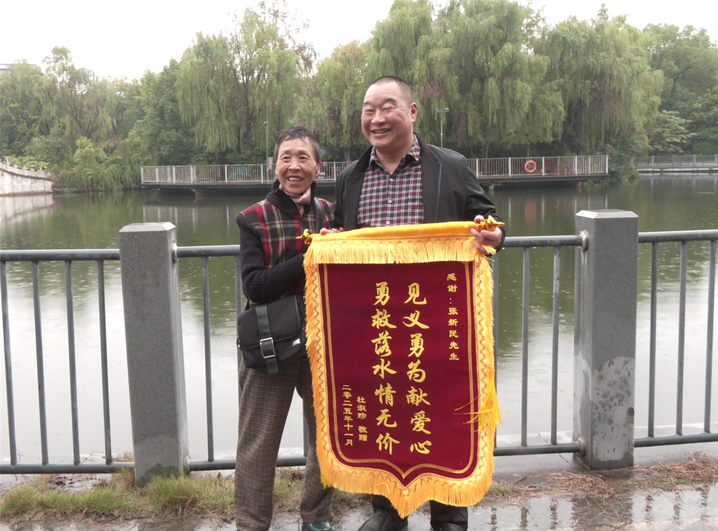 “太感谢你了!是你给了我儿子第二次生命,我们全家都记着这份救命之恩。” 11月12日,被救落水男子的母亲杜淑珍将一面锦旗郑重地交到张新民手中。红底金字的锦旗上,“见义勇为献爱心 勇救落水情无价”十四个字熠熠生辉,映照出张新民危急时刻挺身而出的无畏勇气。