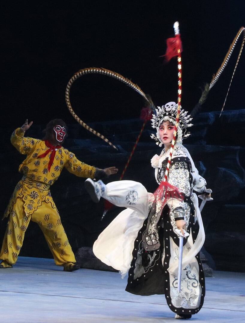 舞台上,演员们以精湛的婺剧表演技艺,将孙悟空的机敏果敢、白骨精的狡黠多变等演绎得淋漓尽致,将传统唱腔与灵动身段完美融合,为观众呈现了一场极具金华地域特色的文化盛宴。