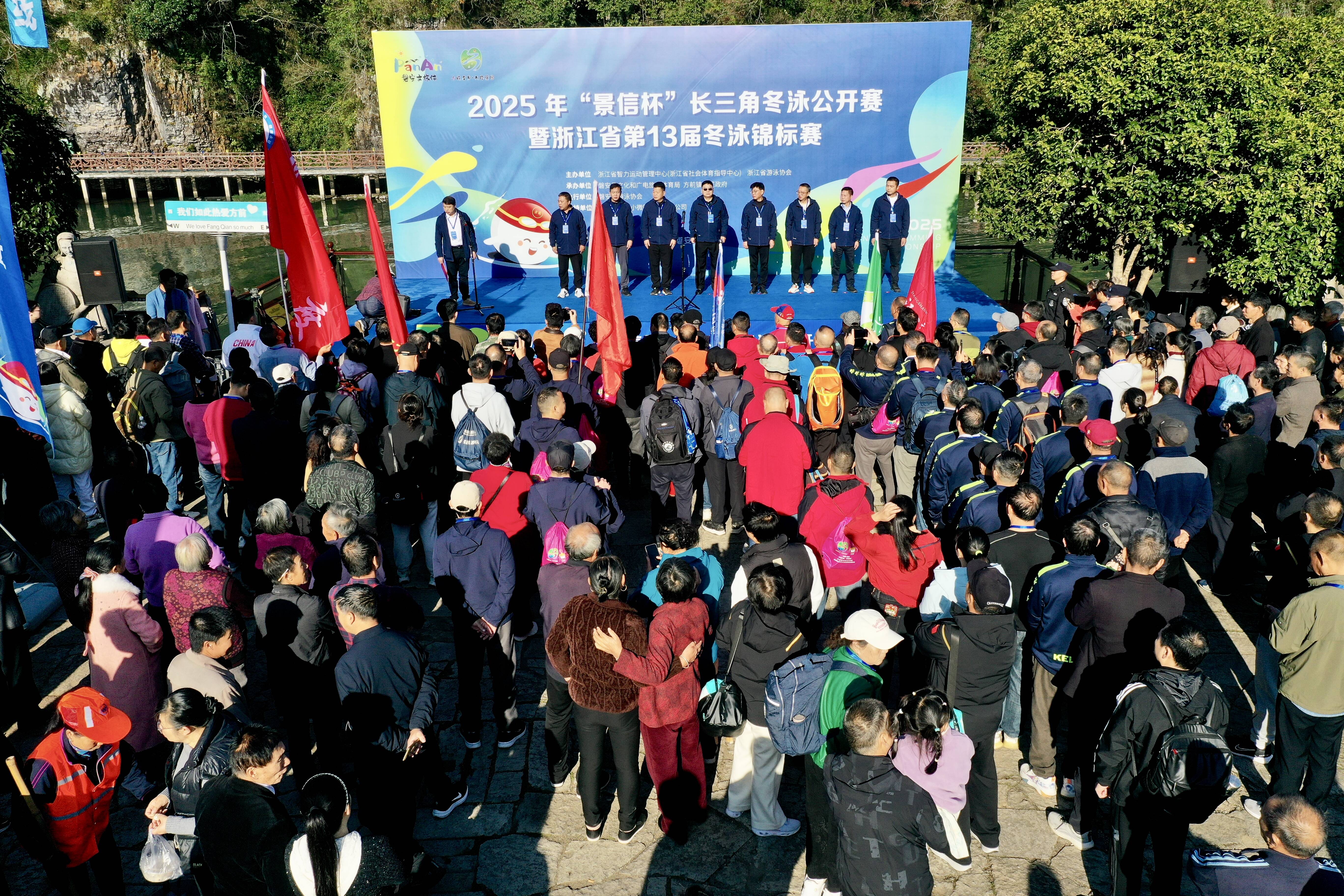 鼓点铿锵催奋进,彩龙盘旋迎宾客。11月16日上午9时,中国·磐安2025年“景信杯”长三角冬泳公开赛暨浙江省第13届冬泳锦标赛在磐安县方前镇始丰溪畔正式开赛。这片享有“浙江省冬泳基地”美誉的优质水域,迎来了来自长三角地区的600余名冬泳健儿,共同在澄澈碧波中演绎冬日激情。