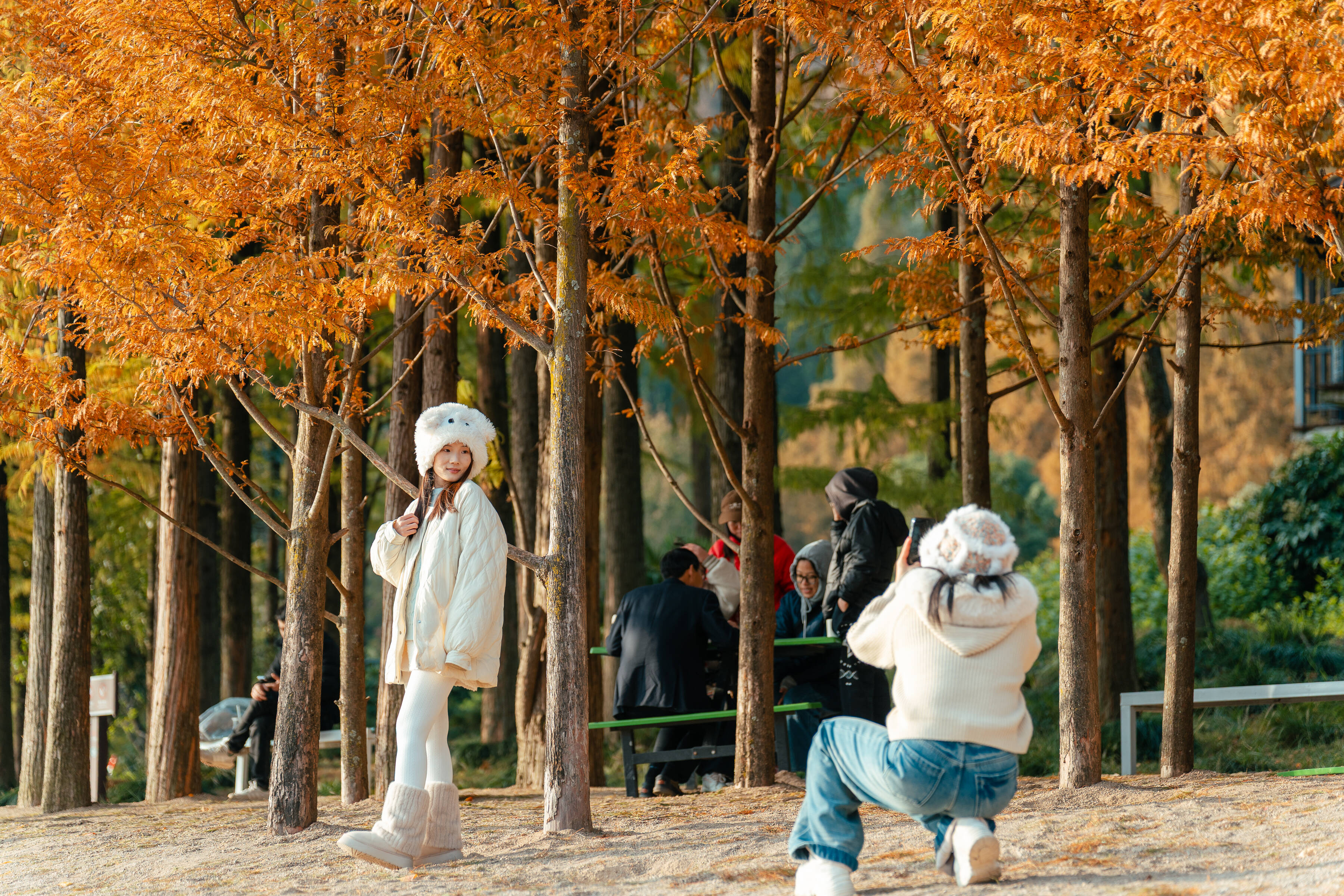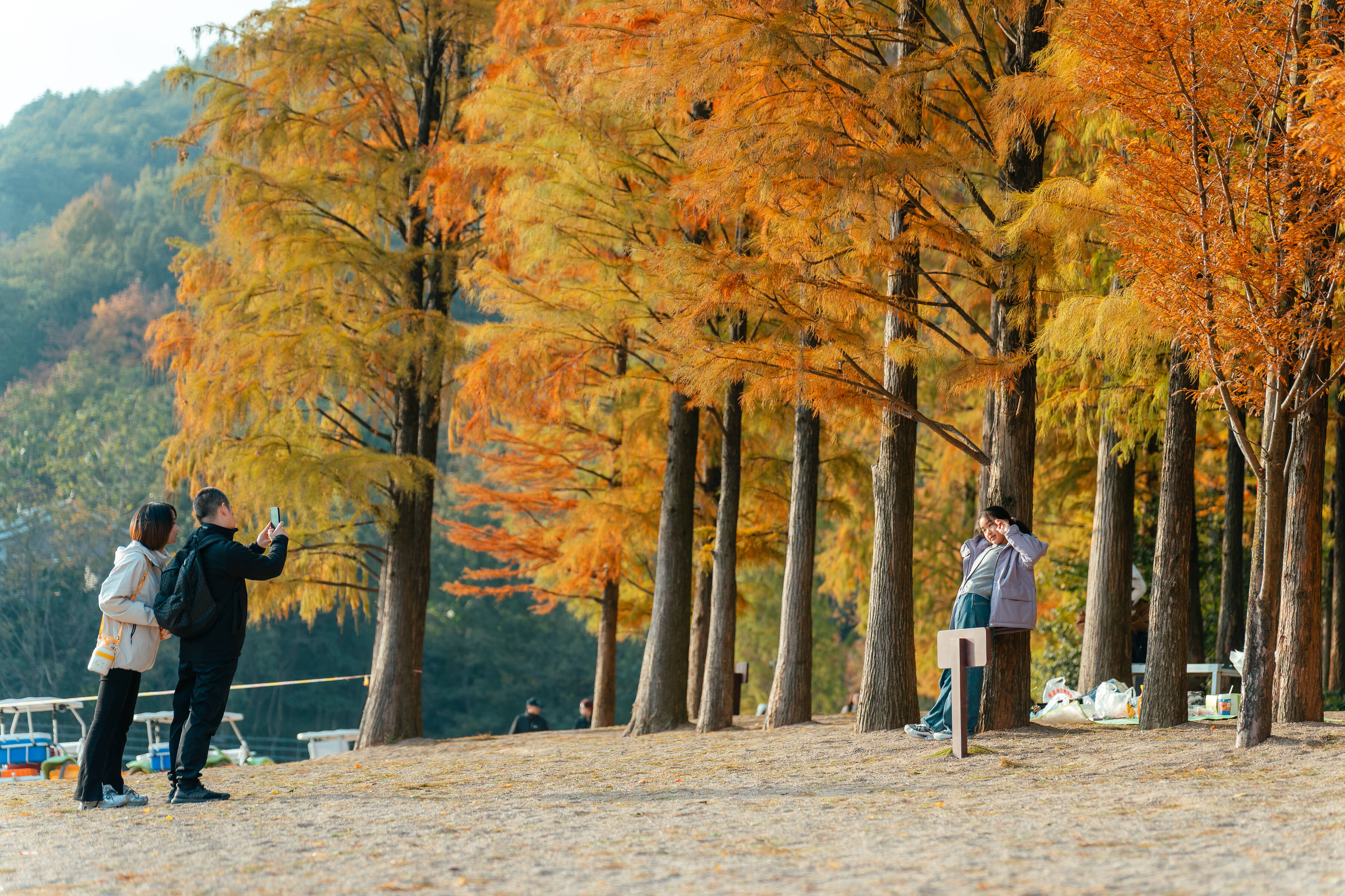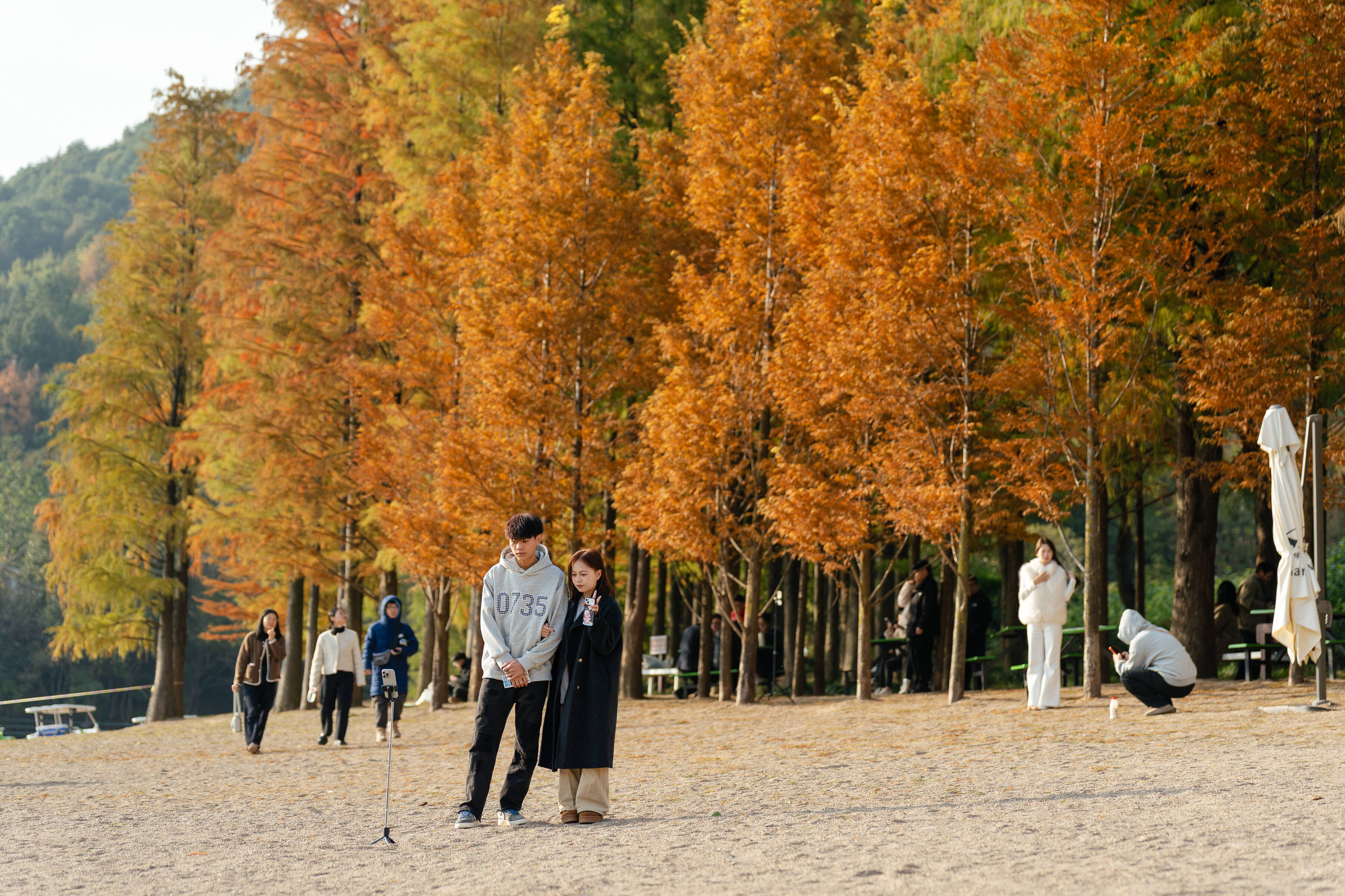 昨日,金华山鹿女湖畔的水杉渐渐披上红装,与层林尽染的山色交相辉映,构成一幅色彩斑斓的画卷。许多游客和市民慕名而来,在湖光山色间漫步赏景、拍照打卡,尽享生态之美。近年来,当地持续推进生态建设,优美的自然环境已成为深受群众喜爱的休闲游憩空间,生动展现了绿水青山就是金山银山的发展理念。