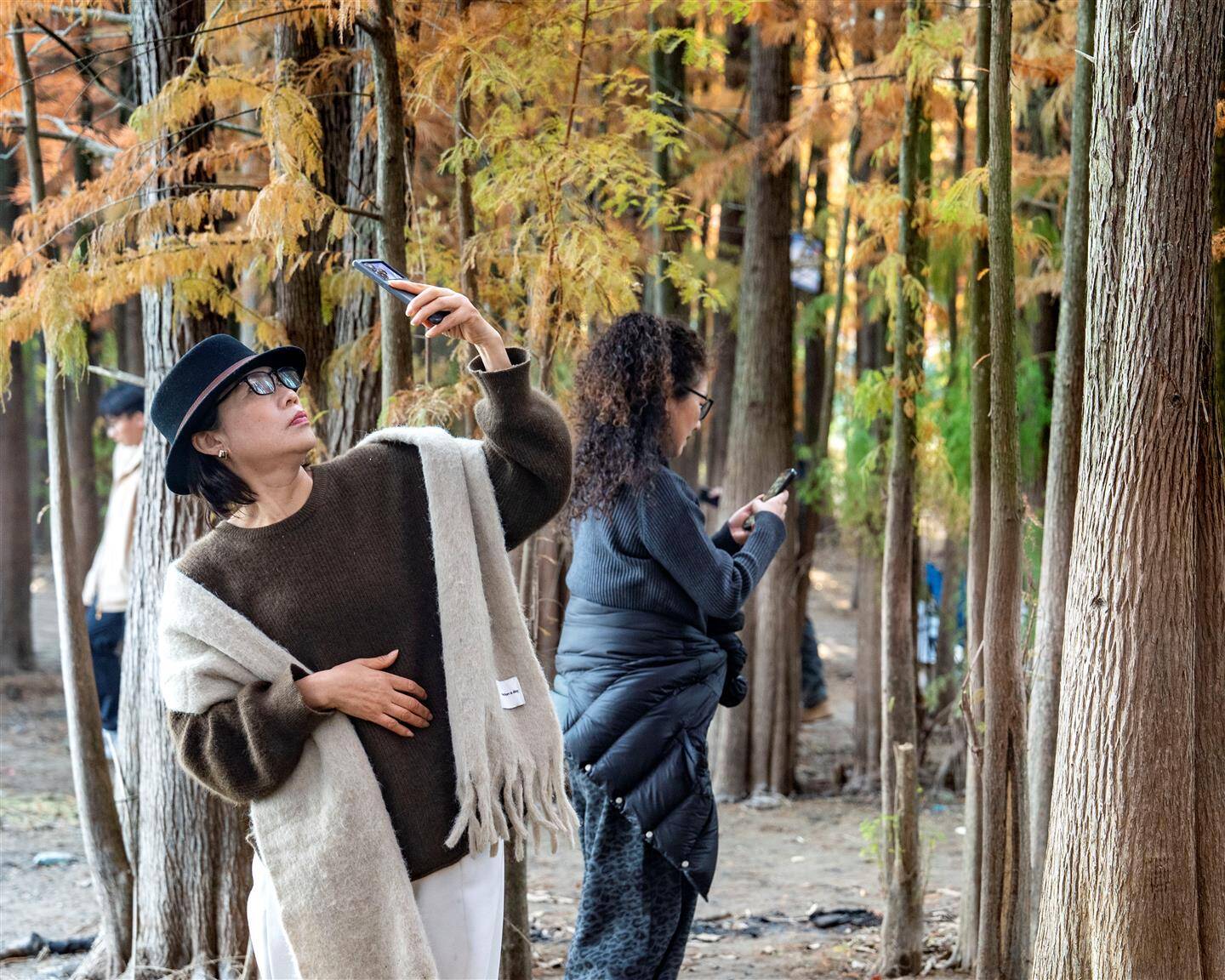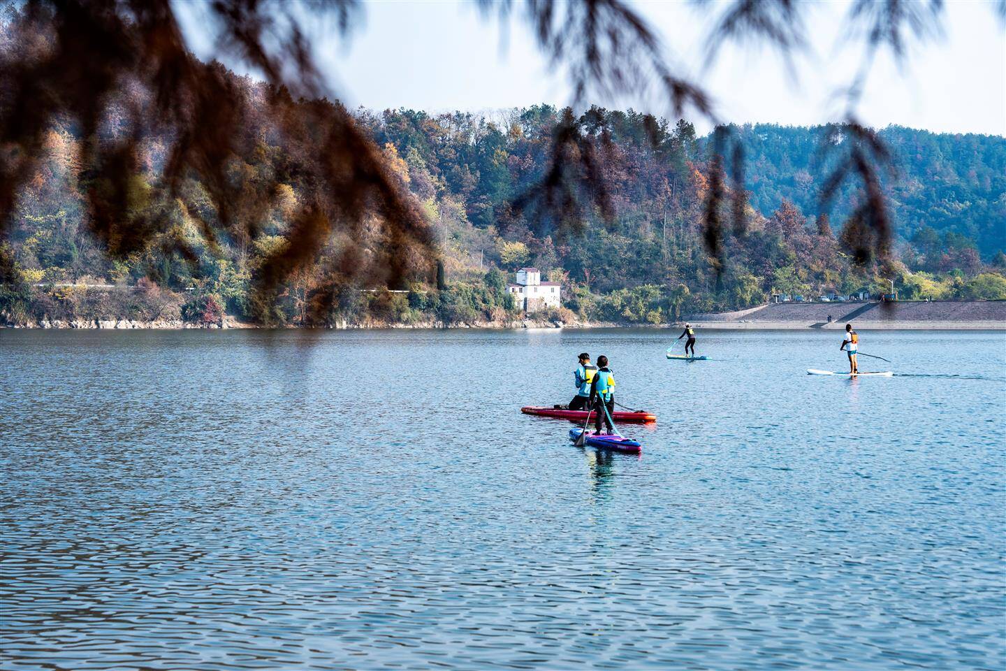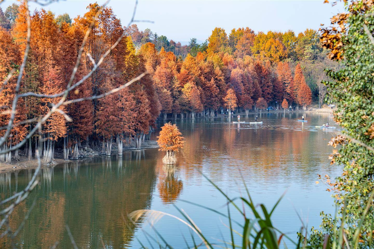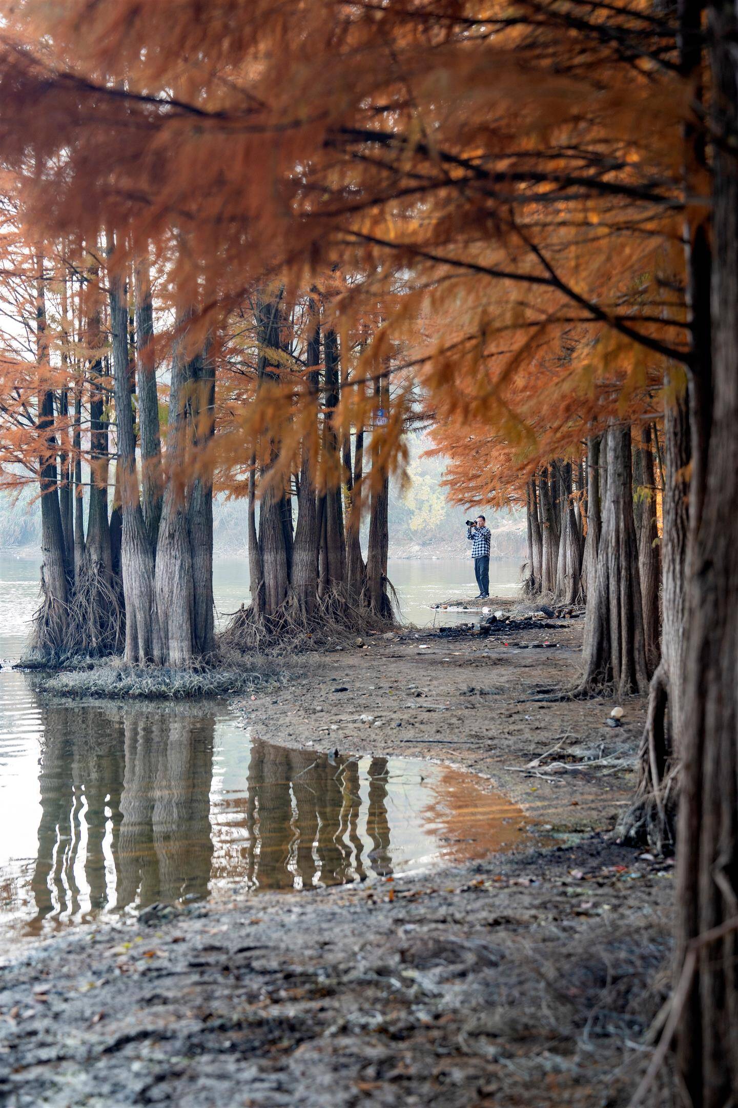 昨日,记者在麻堰水库旁见到,这片水杉林悄然披上丹霞色衣装,宛如大自然精心布置的调色盘,这处梦幻“童话林”,吸引不少摄影爱好者和游客前来拍照、游玩,还有不少在此练习帆板的爱好者和孩子。