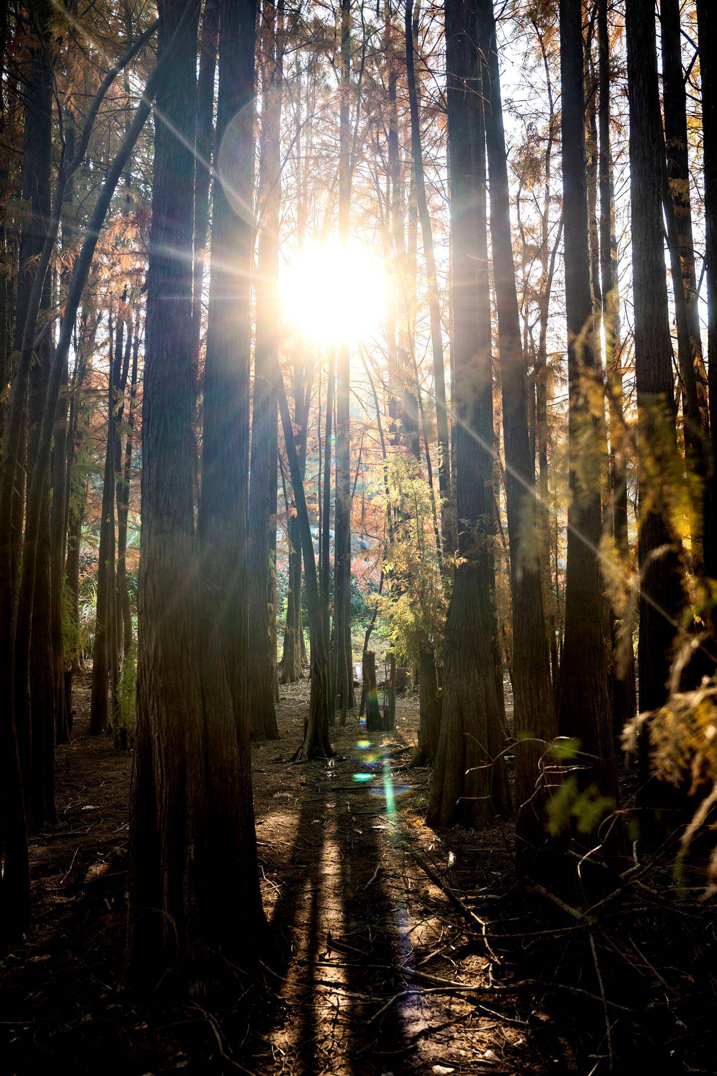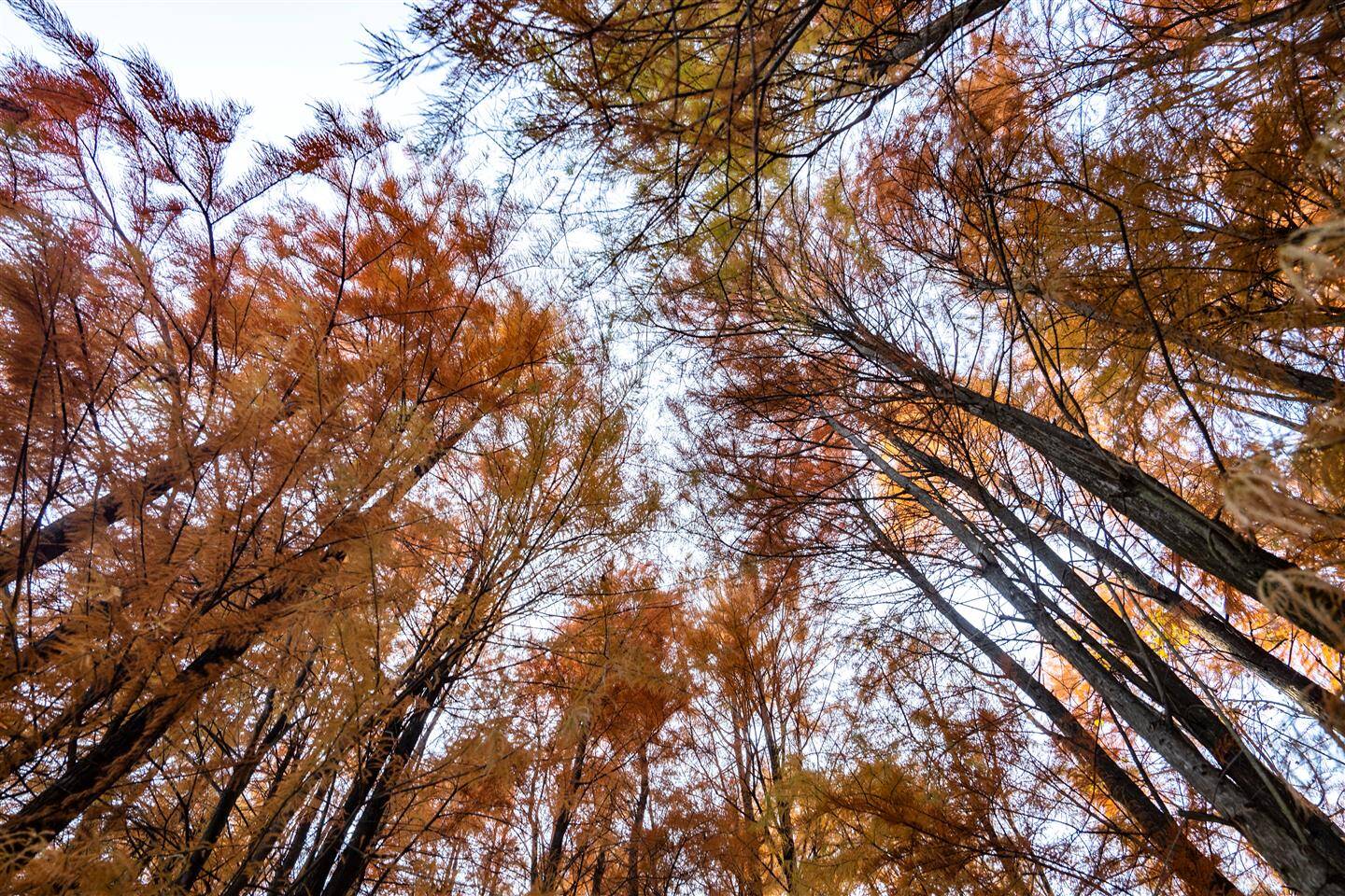 每年11月至次年1月是最佳观赏期,此时水杉林色彩最丰富、姿态最迷人。水杉林旁,一池碧水如无瑕翡翠,与斑斓红杉林交相辉映。微风拂过,湖面波光粼粼,倒影摇曳,尽显灵动之美。